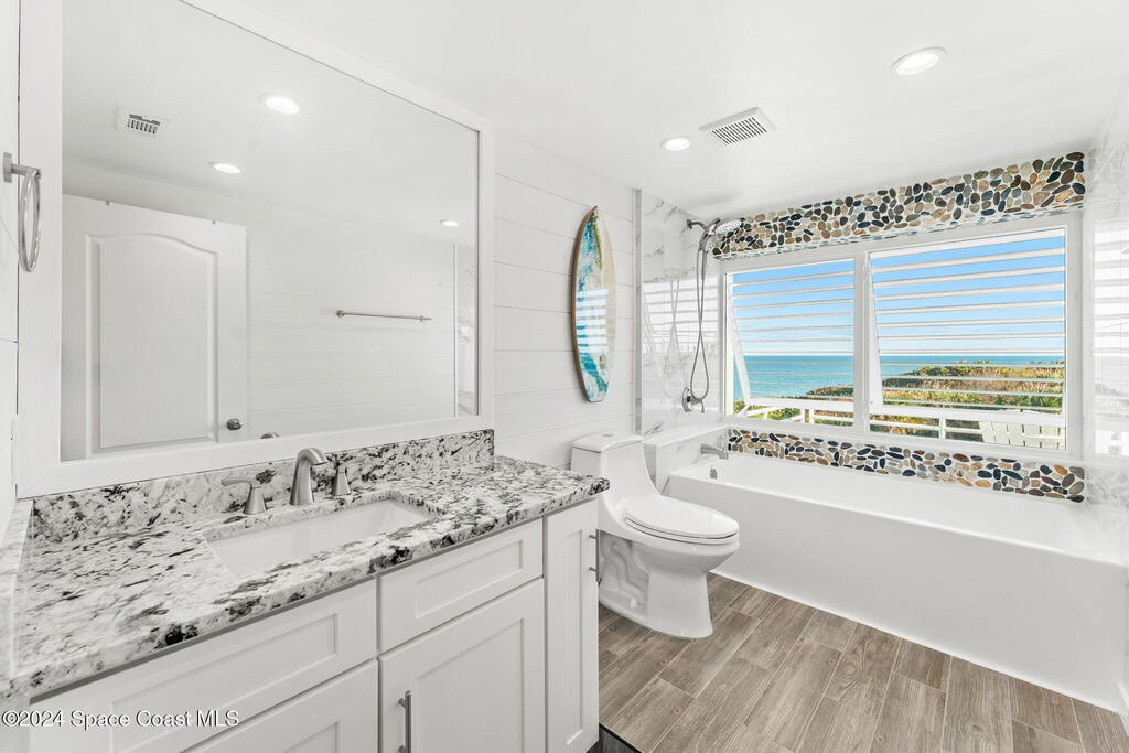 Discover your dream coastal retreat with this stunning oceanfront condo in Melbourne Beach! This two-bedroom, two-bath sanctuary spans 1, 256 sq ft, offering an open floorplan that seamlessly blends style and functionality. Enjoy panoramic ocean views and the ultimate peace of mind with impact windows, doors, and shutters. The remodeled kitchen and bath exude modern luxury, while tile and LVP flooring throughout add a touch of sophistication. The primary suite boasts his-and-her walk-in closets, while the guest suite offers a welcoming escape for visitors. Deeded beach access ensures you're steps away from sun-soaked shores, while covered parking and private storage provide convenience and security. Whether it's morning coffee with ocean breezes or moonlit beach walks, this condo delivers the ultimate seaside lifestyle.