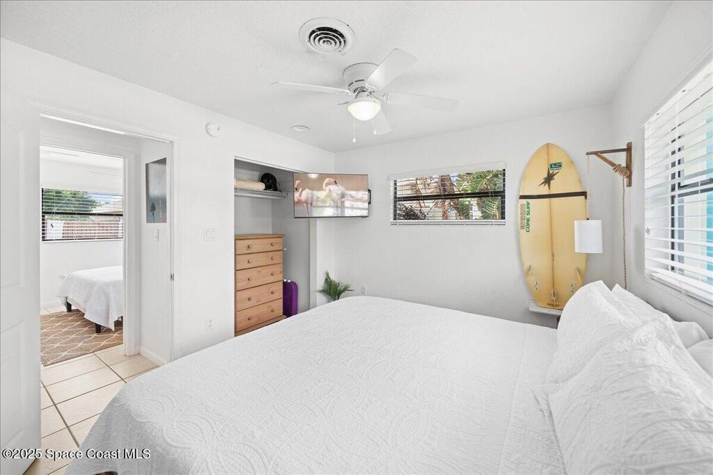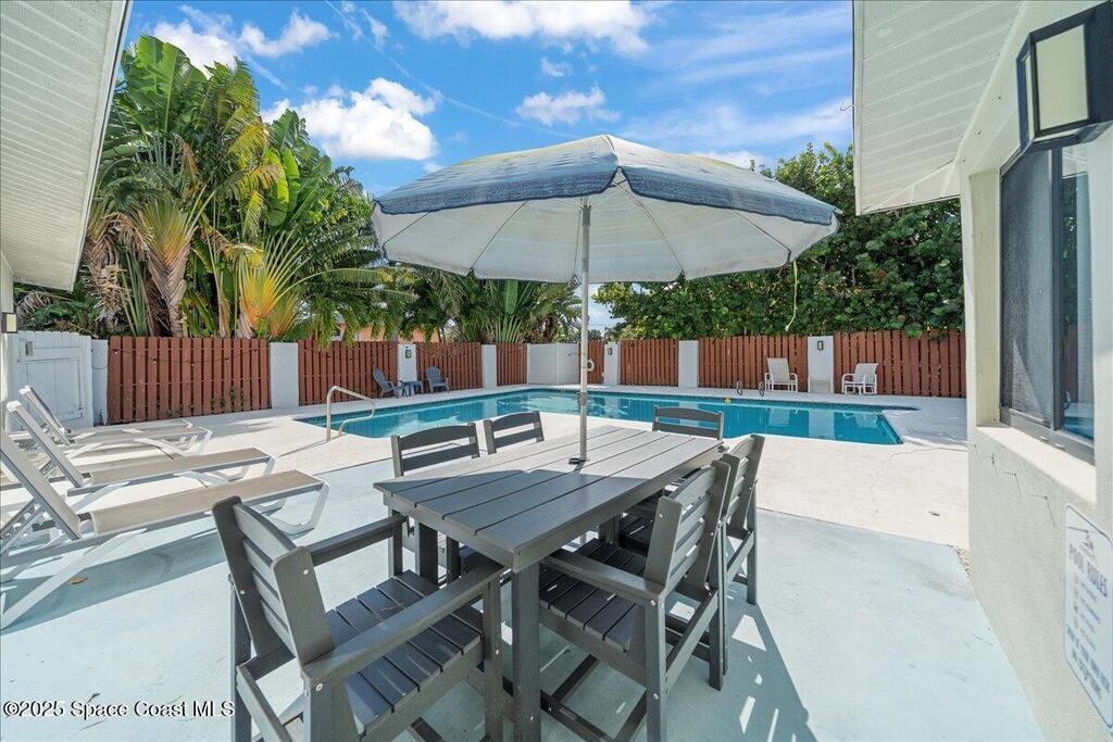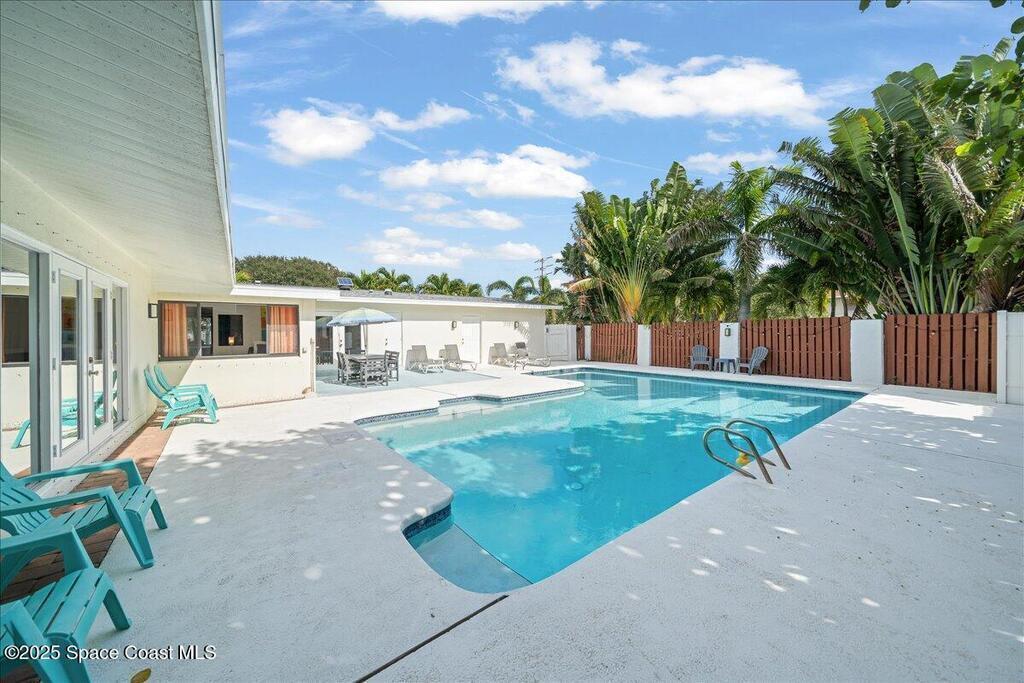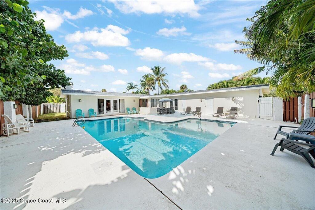 Don't miss this extraordinary, turnkey property, in the heart of downtown Cocoa Beach, perfect as a vacation rental, second home or primary residence! This 4 bedroom, 3 full bathroom, concrete block home offers everything you need for a tropical escape or everyday retreat. With a unique open floor plan and a spacious private swimming pool, its ideal for family gatherings. The fenced backyard will keep your pets and children safe as you enjoy the sunshine! Sitting on a 3rd of an acre corner lot, the home features stunning quartz countertops, custom open shelves and an oversized pool and deck. The thoughtful layout includes a private owner's suite with a fireplace and French doors leading to the pool. Just 2 blocks from the beach and within walking distance to popular restaurants, you're only 5 minutes from Ron Jon Surf Shop, 15 minutes to Port Canaveral and 30 minutes to the Kennedy Space Center. Orlando International Airport and Disney world are both about an hour away. Schedule today