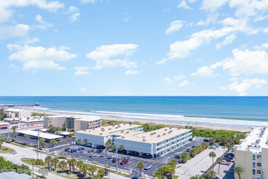 Back on the market with all NEW flooring throughout! Escape to your own paradise in Cocoa Beach, with beautiful beaches, breathtaking sunrises, and a lifestyle that others Dream of. Stunning second-floor retreat featuring ocean views and an inviting open floor plan with fantastic decor. Kitchen offers stainless steel appliances with plenty of cabinet space. Dining area opens to the living space with sliding doors out to the covered patio. Two spacious bedrooms and a beautiful, remodeled bathroom with a walk-in shower. Condo has updated hurricane windows and sliders throughout with a new electrical panel, hot water tank 2025 and HOA takes care of HVAC system and replacement if needed. Assigned parking, heated community pool and a splash pool for the little ones. HOA is fully funded, and all assessments have been paid. Come see what the Cocoa Beach Lifestyle is all about!