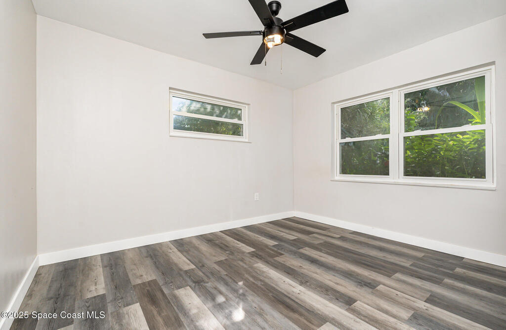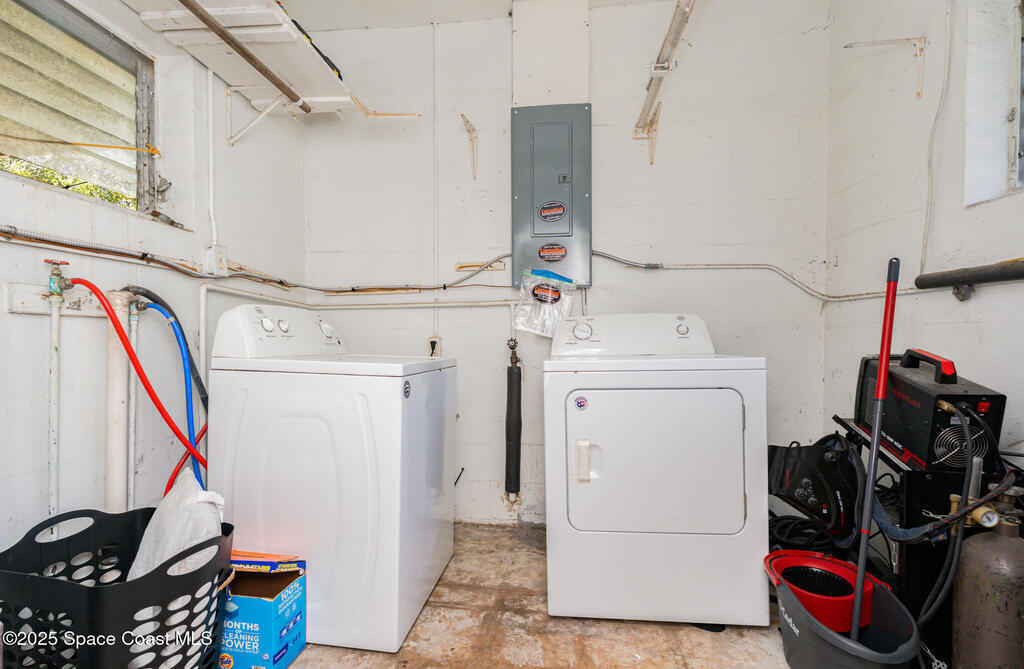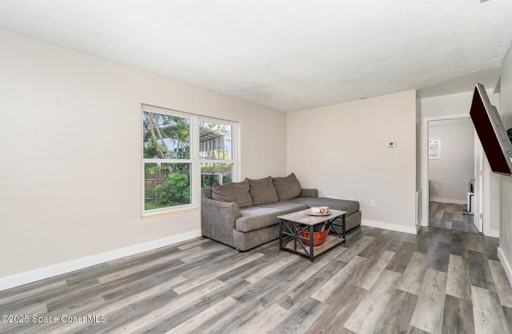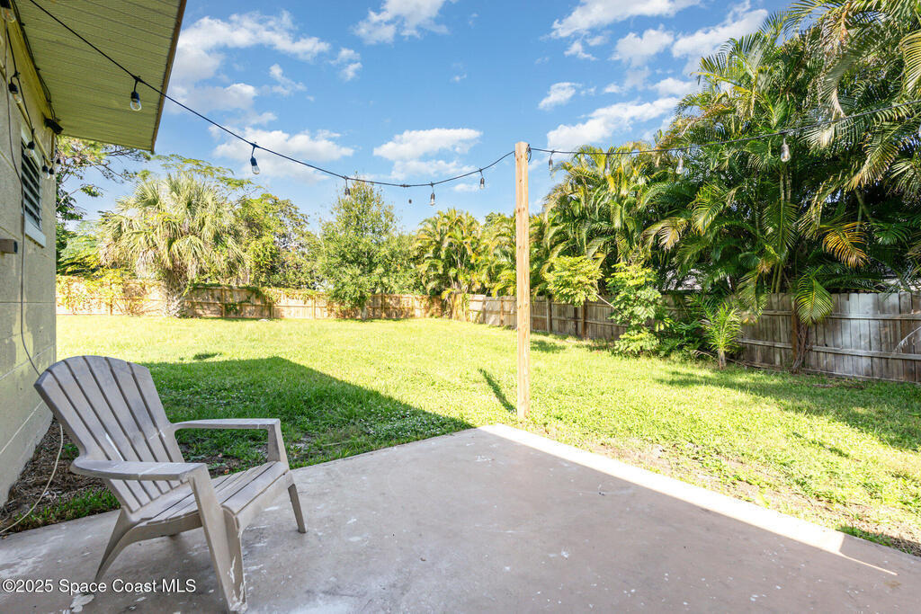 Seller is motivated---Price REDUCED!! This turnkey-ready home can be available for immediate occupancy! Super location--food, groceries, restaurants off Palm Bay Rd; Kids can walk to Palm Bay Elementary! Home is located on a quiet, dead-end street; All big $ items are newer and taken care of--New electric panel and water heater, 2023; New roof 2022; A/C 2018; Concrete block home with oversized lot; Huge backyard is privacy-fenced; Newer laminate flooring; Interior doors and hardware have been replaced; Bathroom has been totally renovated; Bedrooms are in a split floor plan; Open living room, w/ small office or family rm off 3rd bedroom; Indoor utility room w/ washer & dryer included; There are some impact windows too! Carport can be opened back up if Buyer prefers; Extra driveway room for parking; Perfect for a first-time buyer or someone who wants maintenance-free living! Super easy to show!