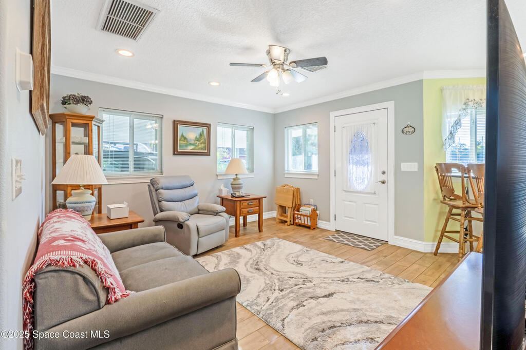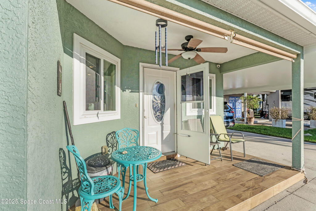 Enjoy lake views right from your front porch in this beautifully maintained 1-bedroom, 2-bath home with a spacious bonus room--ideal for a guest suite, home office, or hobby space. Step inside to a bright, open kitchen offering plenty of cabinets, counter space, and storage--perfect for cooking or entertaining. The primary suite features a large walk-in closet and a private bath for added comfort. Outside, enjoy a covered carport, and a large storage shed roomy enough for your golf cart or tools.Located in a sought-after community with year-round heated pool, golf course, pickleball and tennis courts, clubhouse, and planned activities, there's always something to enjoy. Just a short drive to Orlando, the airport, and Florida's beautiful beaches. Experience resort-style living with a front-row seat to Florida's famous rocket launches!