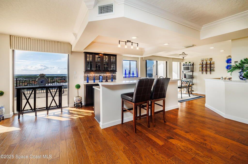 Experience luxury coastal living in this rare, renovated penthouse at the iconic 2100 Tower in world-famous Cocoa Beach. This spacious 3-bedroom, 2.5-bath residence offers 2, 543 sq. ft. of refined comfort with sweeping ocean and river views from every room. Enjoy breathtaking sunsets and rocket launches from the wraparound balcony. Upgrades include stainless steel appliances, custom cabinetry, title, and two new HVAC units. The secured building offers resort-style amenities--private beach access, heated pool, fitness center, tennis and pickleball courts, clubhouse, and grilling area. Perfectly located next to Sidney Fischer Park and across the street from Publix, shops, and dining, this residence blends elegance with convenience. Less than an hour from Orlando Airport, this penthouse captures the best of Cocoa Beach living--sun, surf, and sophistication.
