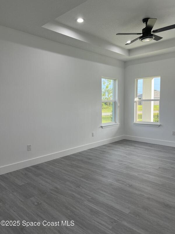 Experience modern living in this brand-new 4-bedroom, 2-bath home located on an oversized 0.28-acre corner lot in Palm Bay, offering plenty of outdoor space and privacy. This property features an open-concept layout with 9'4'' ceilings, impact windows and doors, quartz countertops, stainless steel appliances including refrigerator, and waterproof laminate flooring throughout. Enjoy luxury bathrooms with floor-to-ceiling tile and glass doors, plus thoughtful upgrades such as a water softener system, recessed lighting, extra closet space, and a motorized garage opener. Conveniently located near top-rated schools, shopping, restaurants, and with easy access to I-95. Perfectly designed for comfort and style, this new home provides the feeling of a fresh build with the convenience of immediate move-in. Available now -- schedule your private showing today!