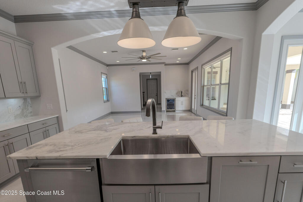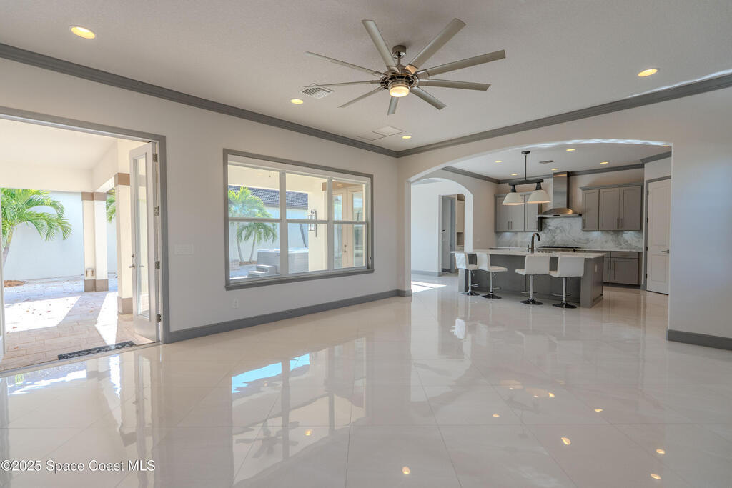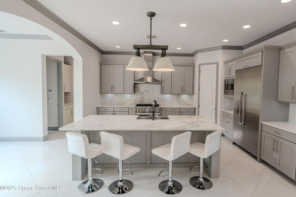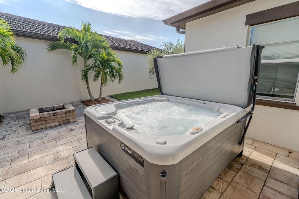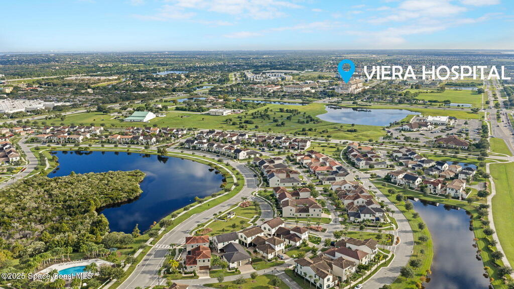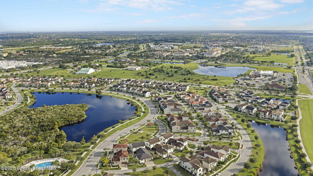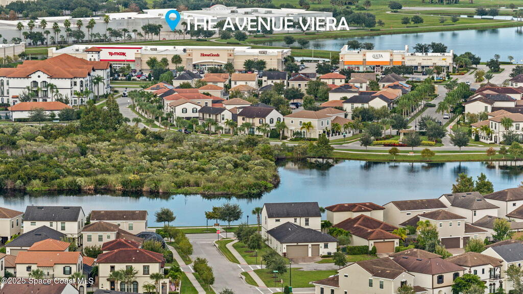 Welcome to a home that defines modern sophistication and effortless living. This beautifully upgraded Mecina by Viera Builders captures the perfect blend of comfort, craftsmanship, and resort-inspired style. Nestled on a coveted water view lot in Arrivas Village, this 4-bedroom, 3.5-bath retreat invites you to relax and recharge. The private courtyard where a six-person spa, soft lighting, and a charming fire pit create the ultimate outdoor escape. Inside, the open design impresses with dramatic ceilings, designer porcelain tile, and elegant fixtures that add warmth and character. The gourmet kitchen shines with Thermador appliances, Brazilian marble, and sleek accents that inspire culinary creativity. A loft upstairs opens to a balcony with tranquil water views. The primary suite is pure indulgence with dual closets, a soaking tub, and rainfall shower plus each floor has a laundry and 2.5 car garage. HOA covers lawn care, irrigation, exterior painting, pool, playground, and dog park.