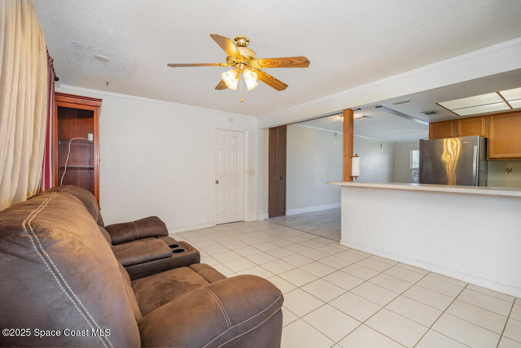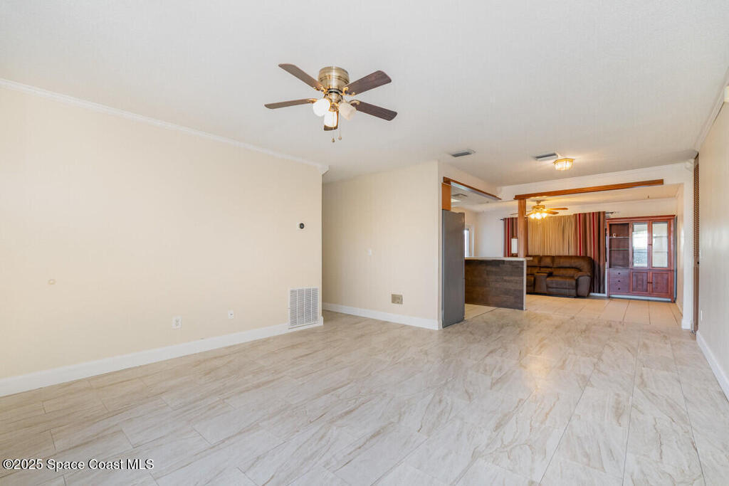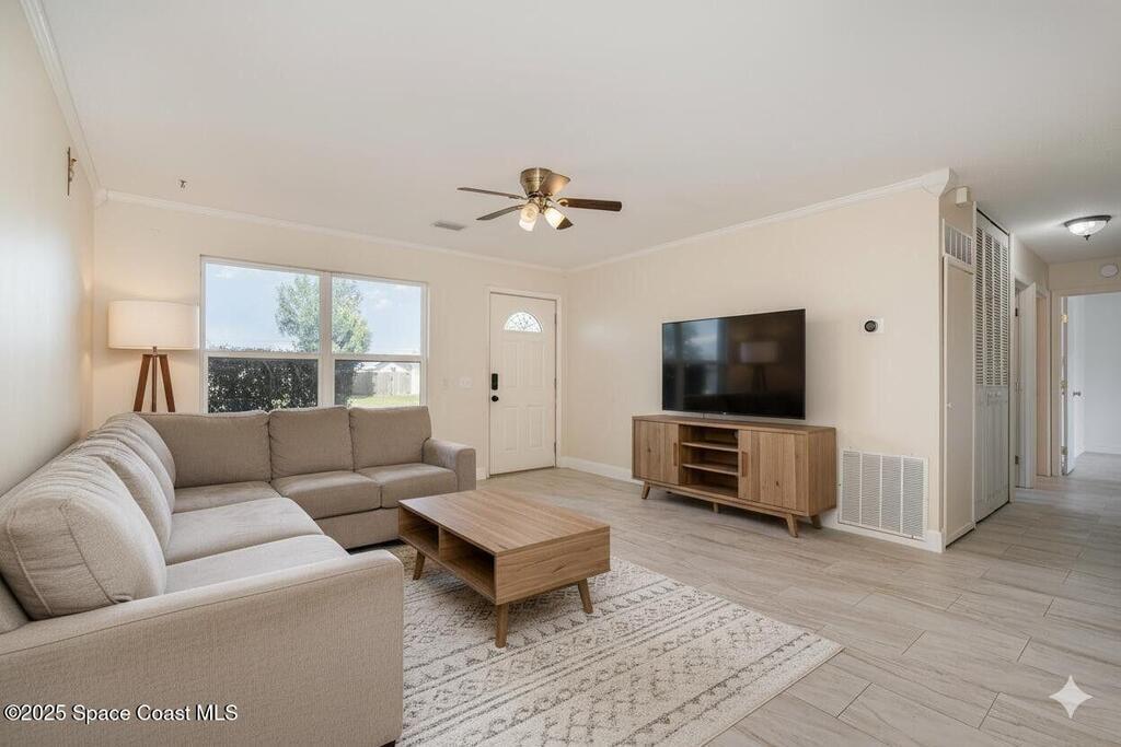 Bring your personal touch to this charming 3 bedroom, 2 bath single family home with NO HOA, 1 car carport. The bright living room flows into an open kitchen with light wood cabinetry, stainless steel refrigerator, black stove, and breakfast bar opening to the dining area. French doors lead to an enclosed patio and fully fenced backyard perfect for pets or a future pool. Guest bedrooms are spacious and bright, with a full guest bath. The master suite offers French doors to the covered patio and a modern bathroom with multi toned stone look tile, glass shower doors, dark wood vanity with granite countertop, and framed mirror. Located in Melbourne, Florida, minutes from beaches, parks, top schools, major employers, dining, shopping, MLB Airport, and I-95 access, this home combines comfort, convenience, and the relaxed Florida lifestyle.