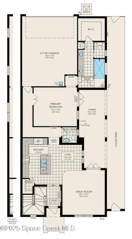 This elegant home features a great room with open kitchen/cafe overlooking the lanai and courtyard, and primary bedroom on the first floor. The second floor offers two bedrooms with walk-in closets and two baths.