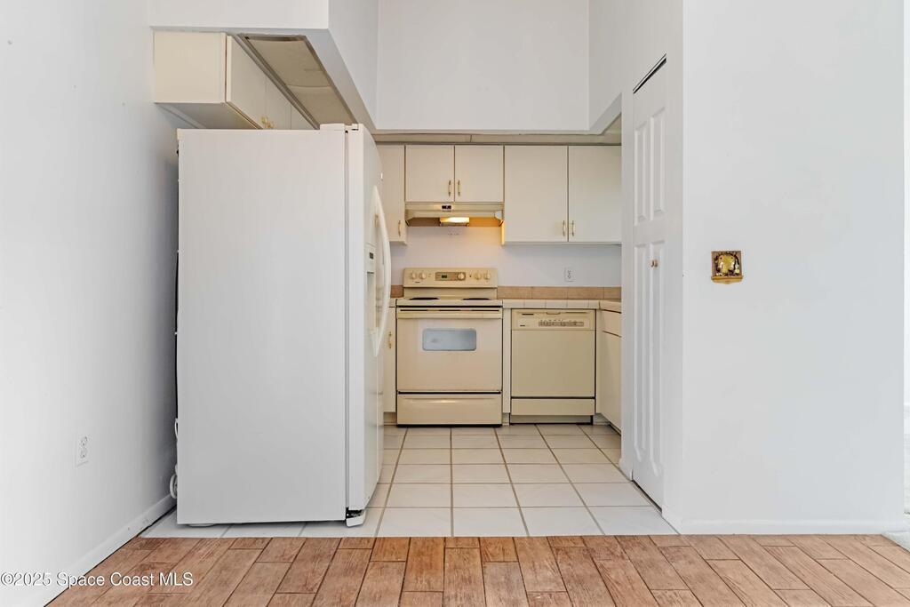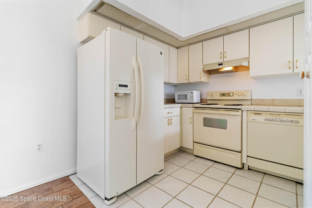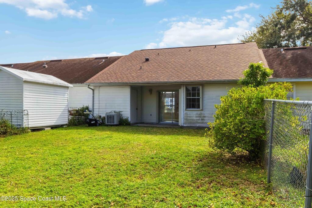 This townhouse offers affordable living with 3 bedrooms, 2 full baths, and has great bones with endless potential! A NEWER ROOF (2023) and storm shutters provides peace of mind, while vaulted ceilings and a split floor plan offer natural light and functionality. The primary suite includes an en suite with private bath and tiled walk-in shower. The spacious living area and dining area boast relaxing WATER VIEWS. Step outside to enjoy a generous backyard - plenty of room to unwind or create your own outdoor retreat. Washer and dryer included. No HOA! Conveniently located near shopping, dining, I-95, only 20 min to Kennedy Space Center, NASA, Blue Origin, and SpaceX, 20 min to the beach, 35 min to Orlando airport and area attractions!