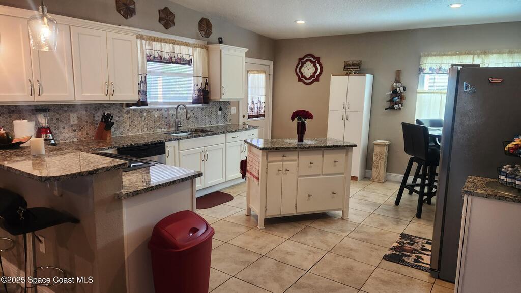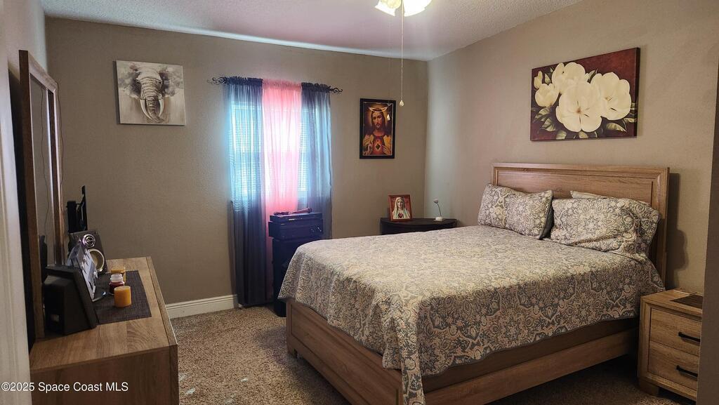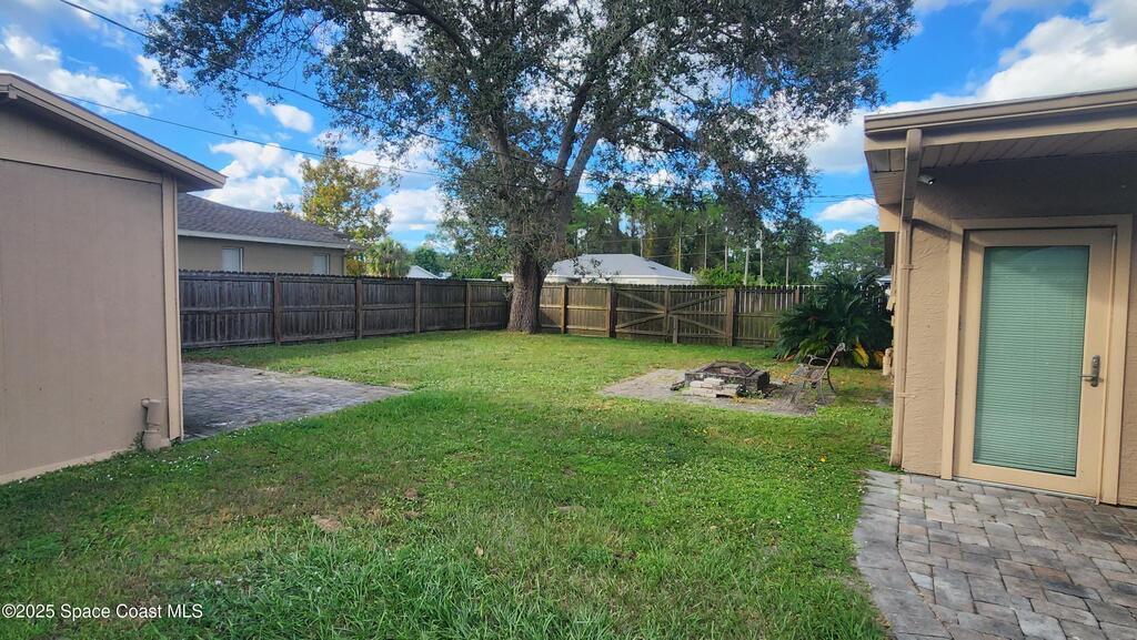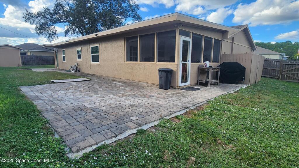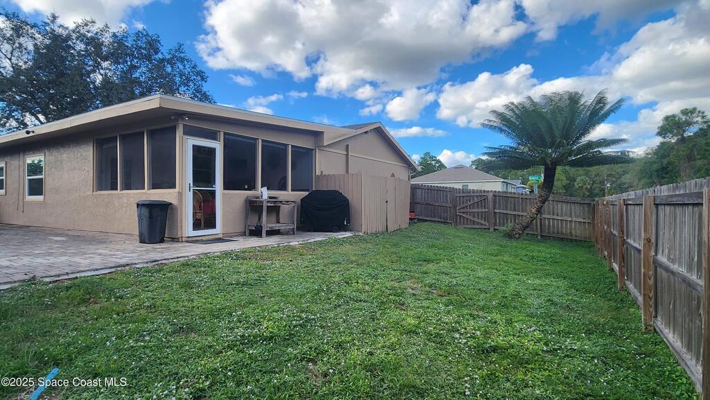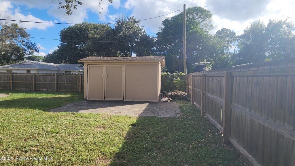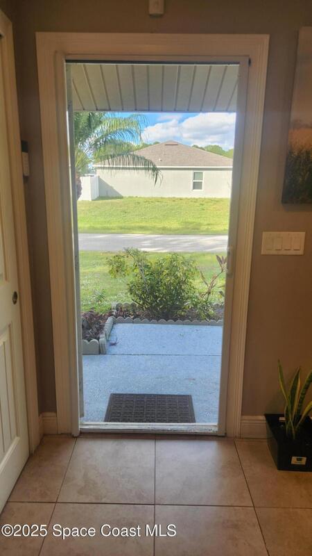 Discover this well-maintained 4-bedroom, 2-bathroom home on a spacious corner lot in Southeast Palm Bay. Perfect for young families, this residence features hardwood cabinets, granite countertops, and a marbleized backsplash. Stainless-steel appliances complement the modern kitchen. Enjoy peace of mind with Storm windows (installed 2019), Night Owl security system, and newer AC, roof, and water heater (all 2017). Two patios, including one covered, a large shed, and a fenced-in yard offer ample outdoor space. This move-in-ready gem won't last long!