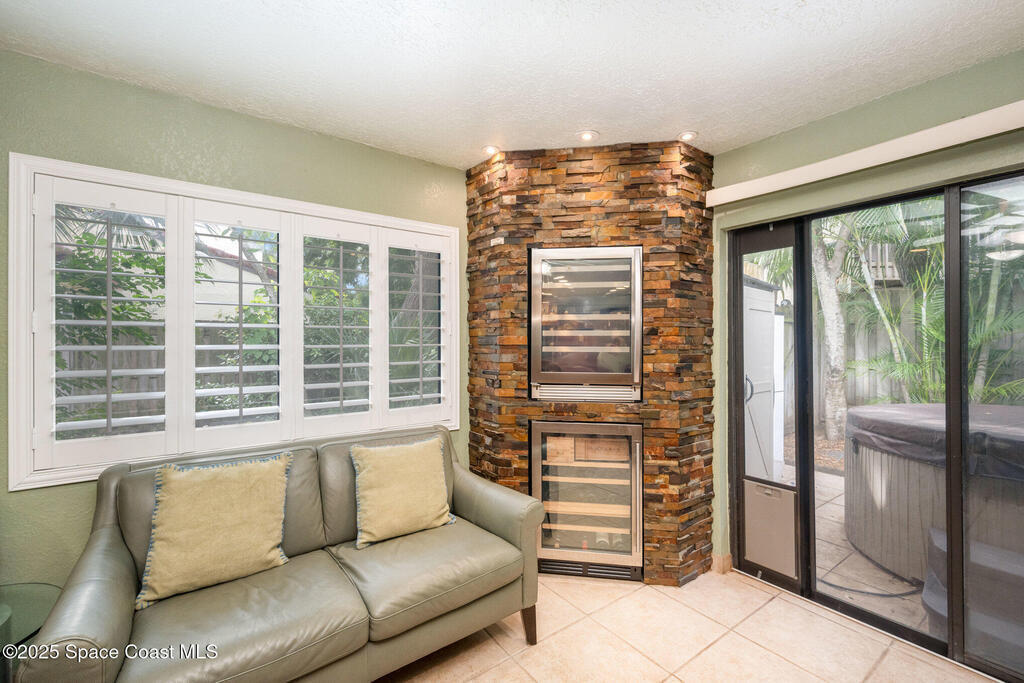 PRICE IMPROVEMENT! Now offered at $449, 900. Beautifully remodeled 3BR/2BA villa with a 1-car garage located in the highly sought-after gated beachside community of Ocean Woods. This home features tile flooring throughout the main living areas, an open kitchen with granite countertops, custom cypress wood cabinetry, two wine cooler refrigerators, and a breakfast bar ideal for entertaining. An inside laundry room adds everyday convenience. A brand new roof installed in 2026 offers peace of mind. Ocean Woods offers resort-style amenities including private beach access, two pools, tennis and racquetball courts, a clubhouse, and scenic walking and biking trails. Just steps from the ocean and perfectly positioned to enjoy breathtaking rocket launches. Ideal as a primary residence, vacation home, or investment property, conveniently located near Port Canaveral, dining, shopping, and entertainment.