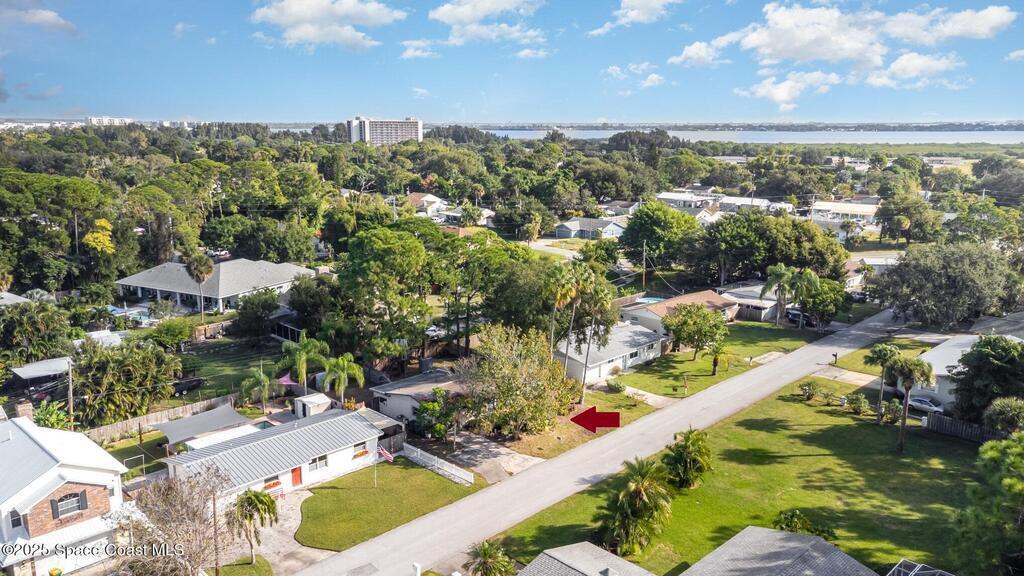 Outstanding location in South Merritt Island! 1/2 mile walk to Rotary Park. All A rated schools. Tropical landscaped front yard with large Koi pond welcomes you to this concrete block home. Incredible potential to remodel to your own taste. Cast-iron pipes have been replaced in 2022. Kitchen has already been partially removed and is a blank template ready for a fresh new look! Peaceful neighborhood of well-maintained homes and no through traffic. Open floor plan enters into living and dining room, passing through the kitchen into the family room with fireplace and sliders to the screen enclosed back porch. Was used as 3 bedroom 1.5 bath. Should be easy to modify into a 2 bathroom home. One car garage, double driveway with basketball hoop. Large backyard fenced and separated to allow one side for the kids and the other side for storage. Easy to open up completely. AC 2014. Impact garage door 2015. City Water and City Sewer!