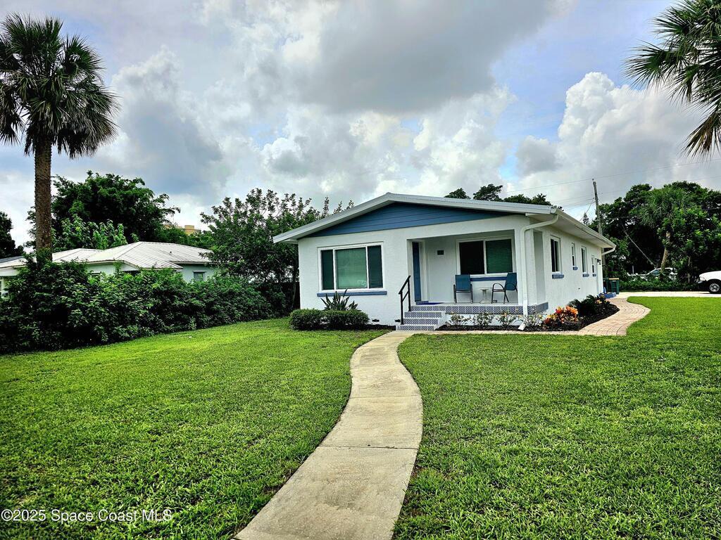 This adorable cottage style home comes fully furnished and offers a true-mother-in law suite. The main living area has 2 spacious bedrooms, full bathroom, large living room, kitchen/dining area and oversized laundry area. The in-law suite has a living/dining area, thoughtfully appointed kitchen with full size appliances, full bathroom with stackable washer and dryer, and private bedroom. Roof, ac, water heater and electrical panel all updated in 2023, and all new hurricane rated windows installed in 2025. Located close to downtown Melbourne, hospitals, Melbourne airport, shopping, restaurants and the 192 Causeway.