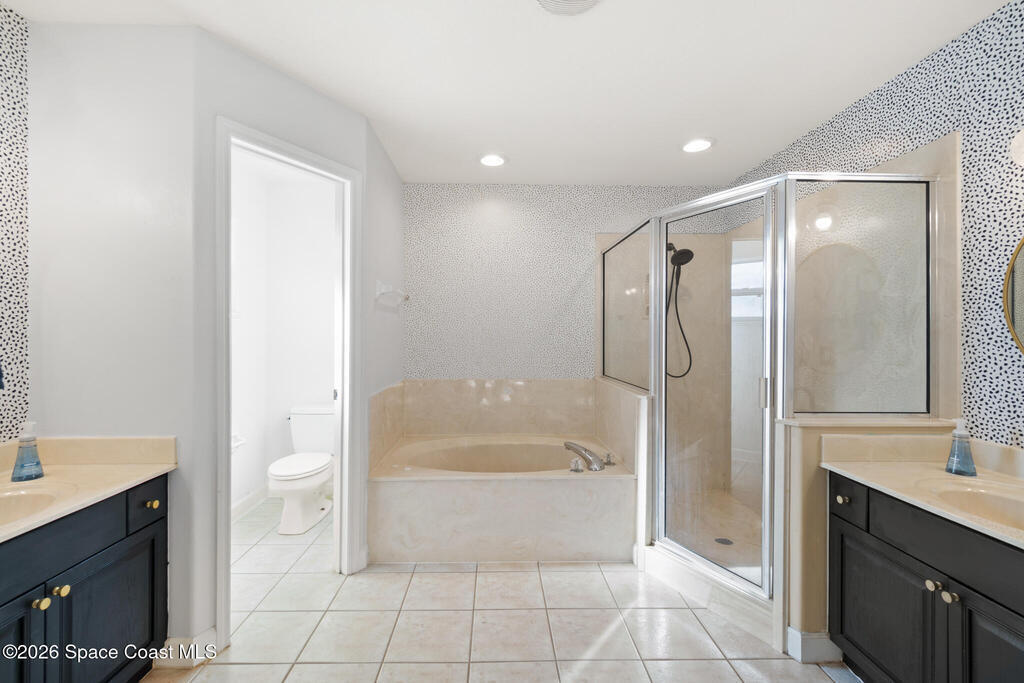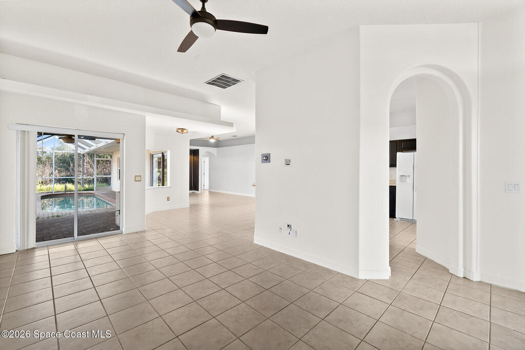 5-bed, 2-bath pool home on a quiet cul-de-sac in the desirable Viera East, Somerville neighborhood. Enjoy over 2, 000 sqft of open-concept living with a split-bedroom floor plan and tile floors throughout the main areas. The updated kitchen features Corian countertops, newer stainless steel appliances, a walk-in pantry, a breakfast bar, and a convenient laundry room. The spacious living and dining areas have nook areas for casual dining or office space, with sliders to the back patio. The primary suite includes his & hers closets, a jetted tub, separate shower, and dual vanities. A bonus room with French doors and closet makes an ideal den or 5th bedroom. Embrace resort-style Florida living with your private screened pool, paver patio, and serene preserve views in the backyard. This home blends style, comfort, and prime location; only a half-mile from top-rated Ralph Williams Elementary and Clubhouse Park, and just 4 miles from The Avenue Viera shopping & dining.