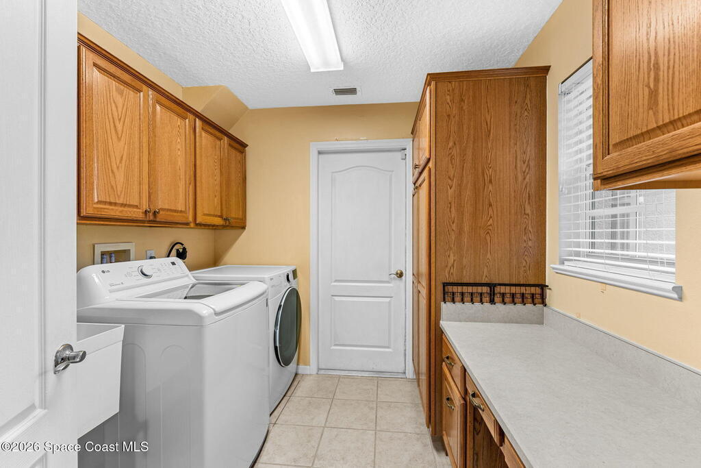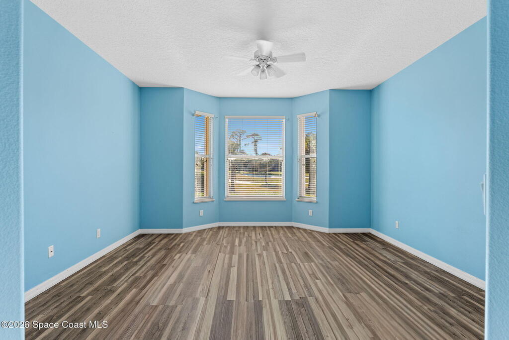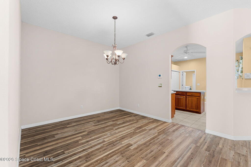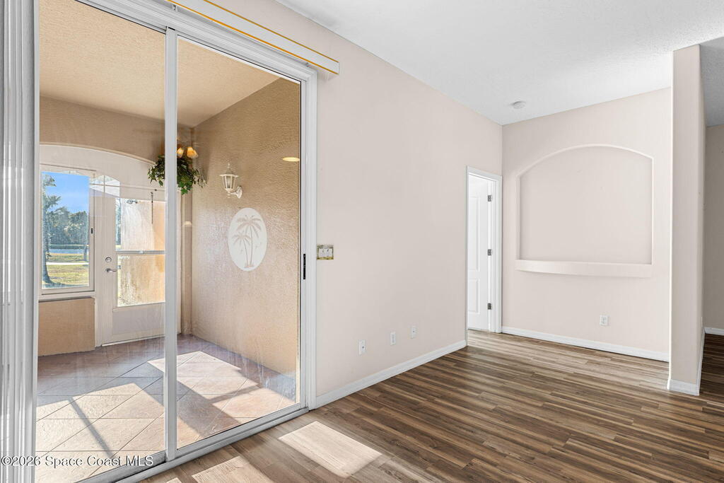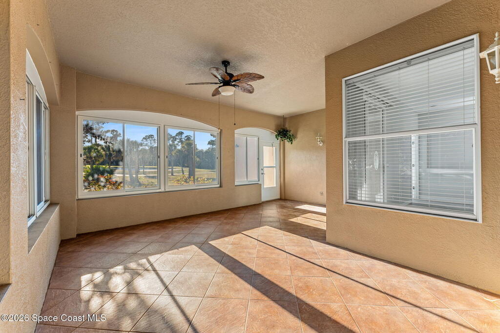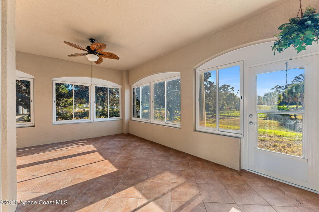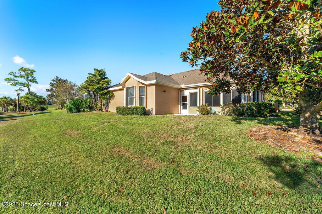 Back on the market with BRAND NEW Luxury Vinyl Plank Flooring!! NO carpet! Surrounded by a picturesque golf course, Viera East is filled with amenities - including a community pool, tennis/pickleball courts, and fitness center. In the Aberdeen subdivision, you'll enjoy truly worry-free living, with the association covering roof replacement, exterior maintenance, insurance, and lawn care. As you step inside this concrete block half-duplex, you are greeted ample natural light and a view of the golf course. Designed with a split plan, the primary suite is separated from the guest bedrooms by a large open living room and dining area. The kitchen features stainless steel appliances, an island, and a breakfast nook. If you enjoy being outside, but don't want to be in the heat, you'll love the large covered porch, which has been windowed & enclosed (additional space not included in the 1641 sq. ft) and is a peaceful place to enjoy sunset views. Book your showing!