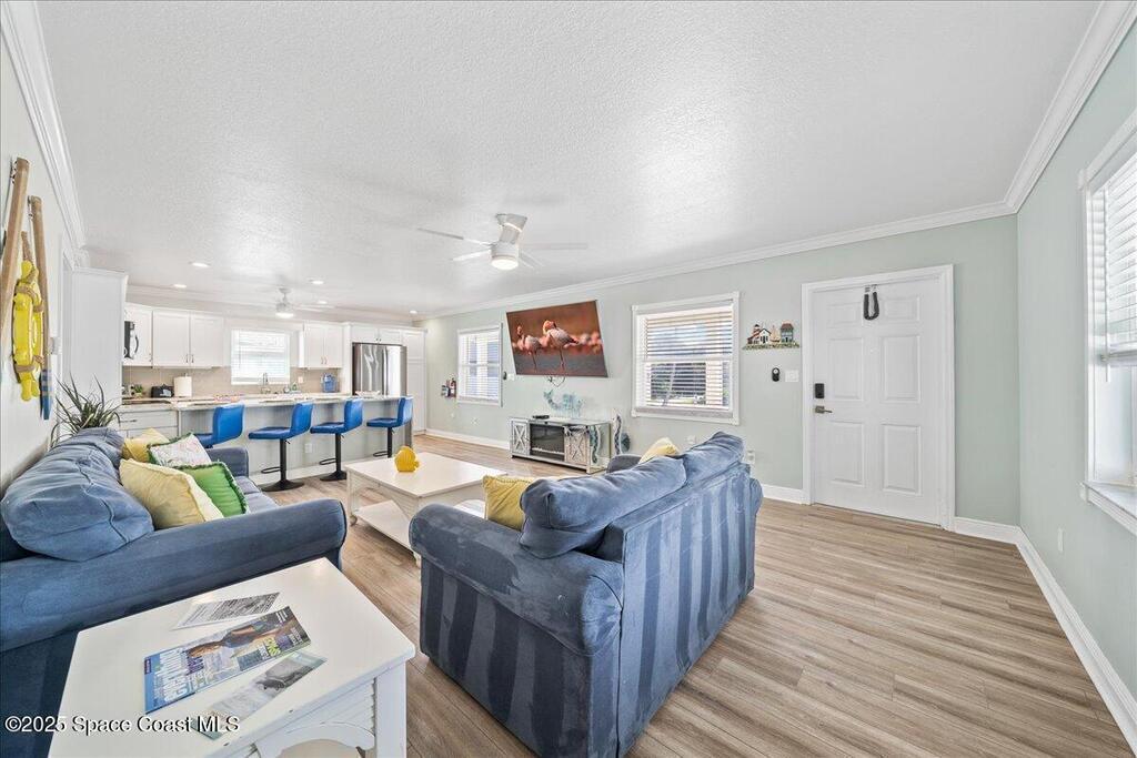 The ocean views from this stunning three story direct oceanfront home will impress! This house boasts 6 bedrooms/3.5 baths and new roof in 2021. It has two kitchens, a lofted office and options to lock off different suites to accommodate multi generational living and guests that visit.. There is a wall of floor to vaulted ceiling windows in the great room over the ocean that brings the ocean front and center and floods the space with natural light. It is such a bonus to have two kitchens and a layout like this that has one suite downstairs and another on the second and third level. A deep, wrap around balcony provides a perfect spot to relax and enjoy the scenery. The property offers direct access to quiet beaches, perfect for leisurely strolls and water activities. This home is ideal for a peaceful retreat on the coast. Long driveway and turn around make for easy access to A1A. Bike path across street from home goes on for miles and miles. Super quiet location in Melbourne Beach.