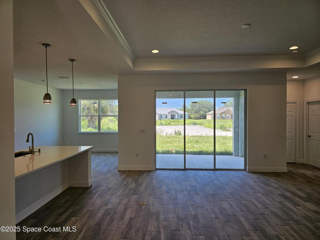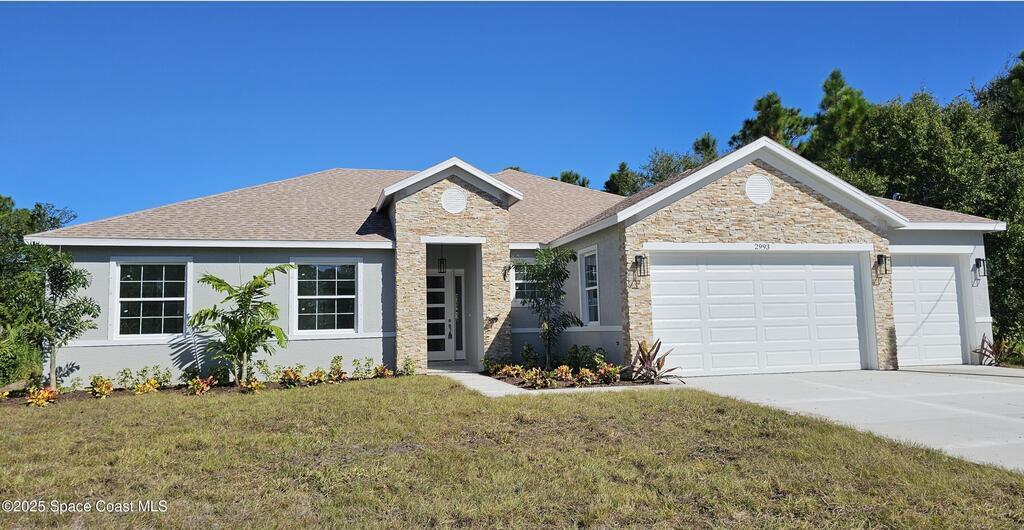 Beautiful brand new home with a ''2-10 Home Buyer's Warranty''! This new home features 4 bedrooms (4th Bedroom could be used as a Den, Dining Room or Home Office), 2 full baths, a large 3 car garage with a separate storage area and roofed back patio. There is an indoor laundry room and spacious walk-in pantry. Featuring 9'-4'' ceilings and 10'-4'' coffer ceilings with crown molding in the family room and master bedroom. This spacious floor plan includes porcelain plank tiles throughout the living areas, bedrooms and closets.
