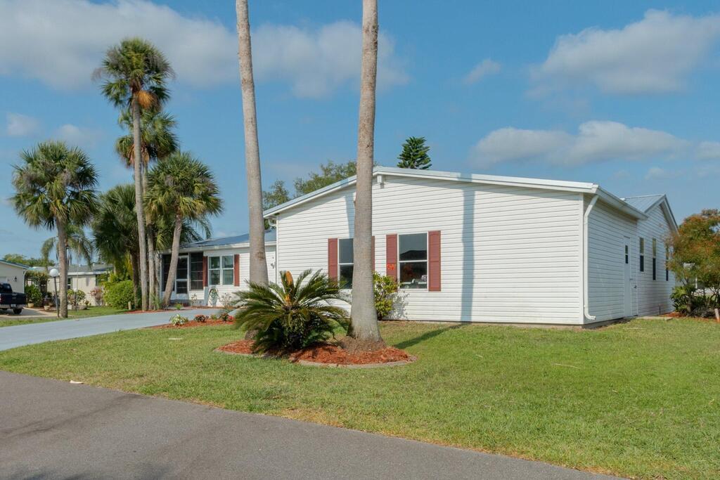 Beautiful and well-maintained 2-bedroom, 2-bathroom home situated on a corner lot with an attached 2-car garage plus workshop area. This home features an oversized kitchen with a cook island, built-in oven, and granite countertops. The open floor plan connects the kitchen, dining, and living areas, creating an ideal space for entertaining or everyday living. Recent updates include a metal roof, newer air conditioner, and newer flooring throughout. The community offers a low HOA fee that covers cable, internet, lawn care, RV and boat parking. Enjoy rocket launches right from your driveway! Conveniently located just minutes from I-95 and SR 528, providing an easy commute to shopping, dining, and area beaches. Perfect for year-round living or seasonal residents, this home offers comfort, convenience, and a great Florida lifestyle.