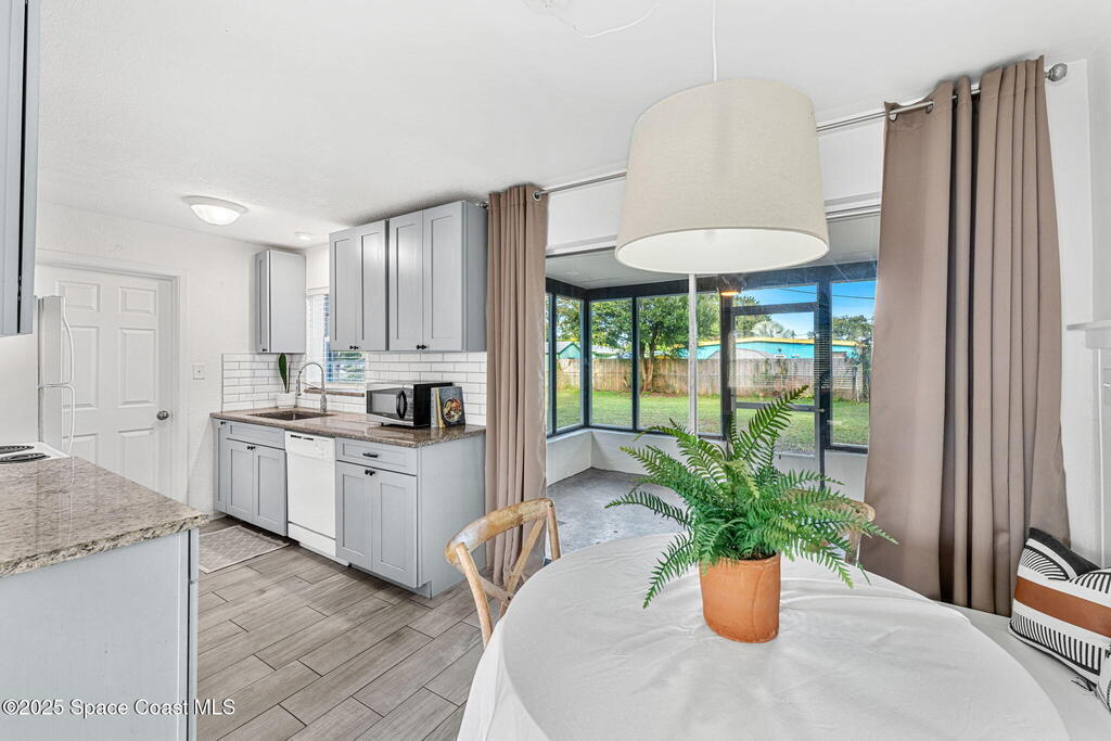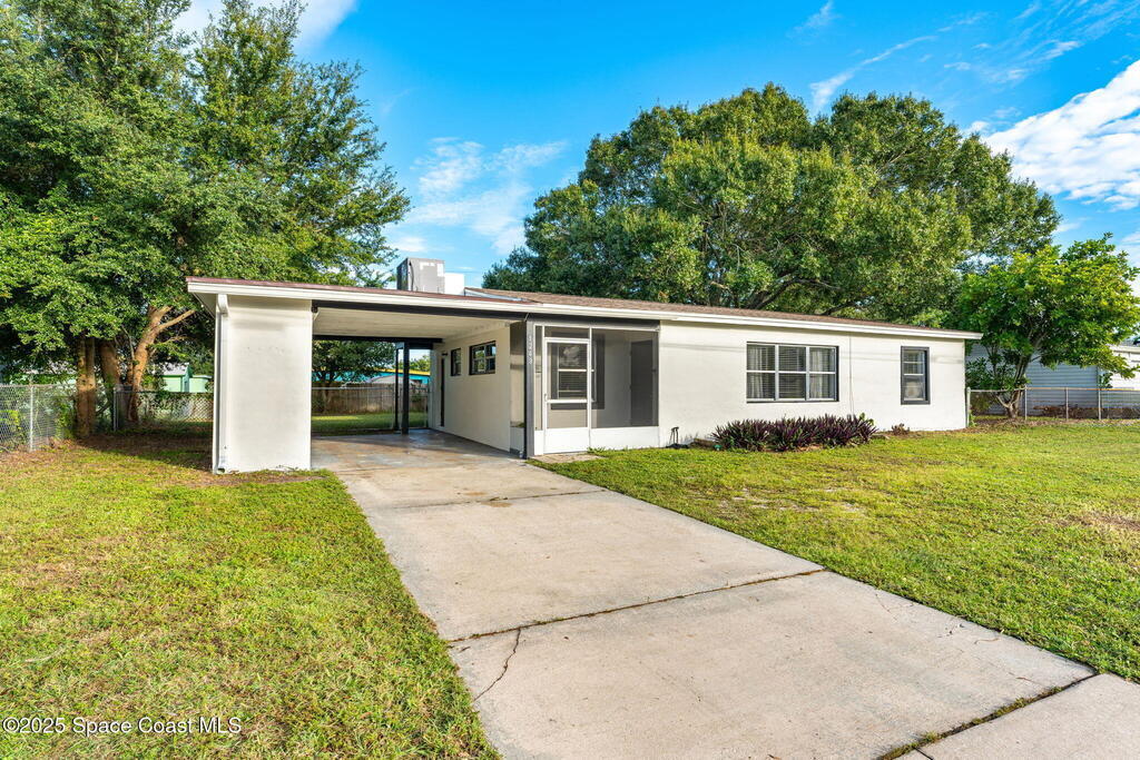 NEW YEAR, NEW $10k PRICE IMPROVEMENT! Motivated sellers! This charming 3 bedroom 2 bath has recent updates including newer kitchen cabinets & wood look tile in kitchen and living areas, New interior and Exterior Paint, New toilet in primary bathroom and new vanity and fixtures in secondary bathroom, Wainscoting in a kitchen nook with built in bench seating with storage underneath. New roof in 2023, Updated Electrical Panel in 2023, Large fully fenced in back yard with gate for all your toys, perfect for kids, fur babies & a pool! Brand new screen enclosure in front of the house by the front door, and large screened in back porch, NEW HVAC system. Tankless Gas hot water heater. Small storage area by the carport, Interior laundry room, and new modern Black and White exterior paint.