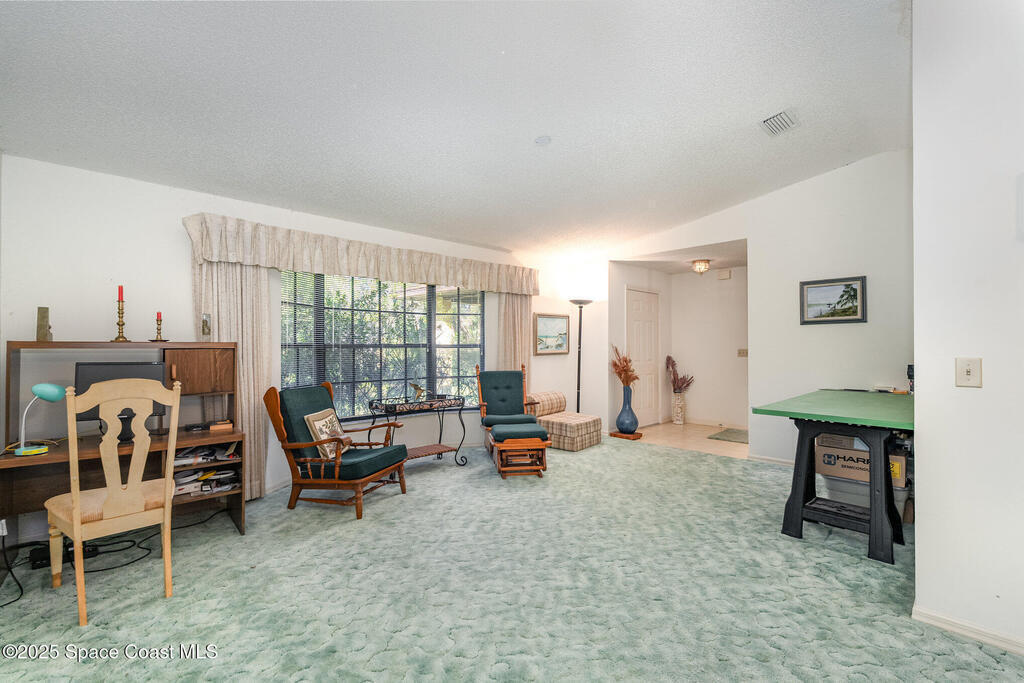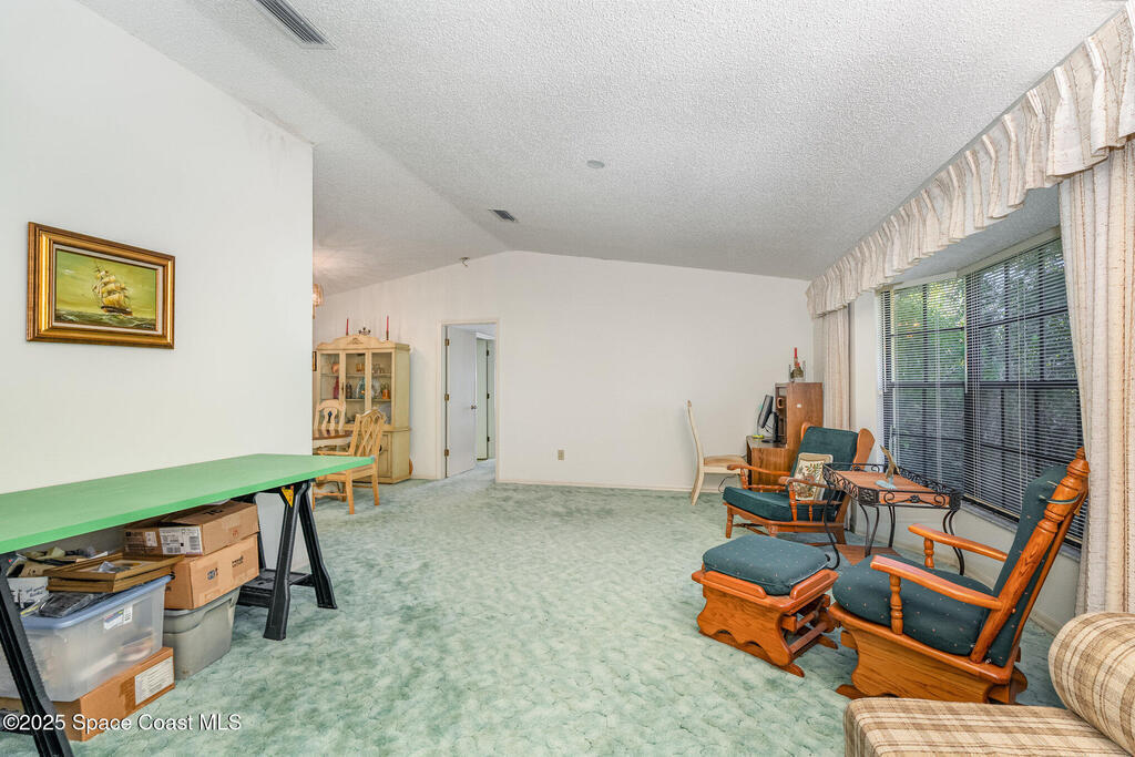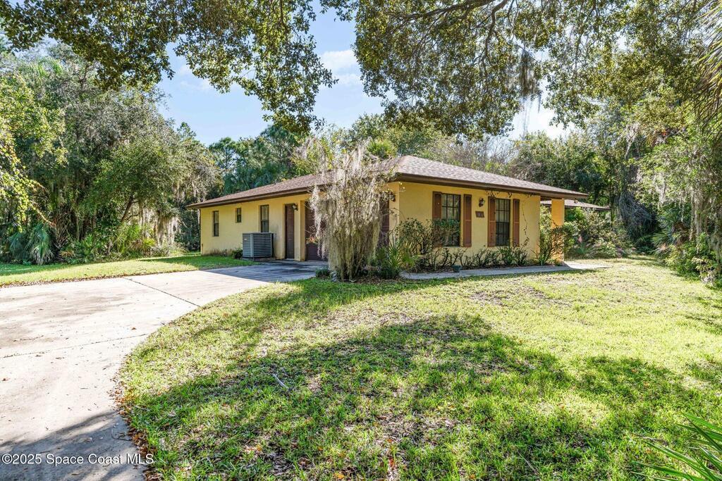 Stunning estate located in the highly sought-after Timbers West community, ready for you to bring your dream vision to life! This beautiful home sits on a 1-acre lot surrounded by mature trees and features a tranquil man-made pond. The spacious split-bedroom floor plan offers both comfort and functionality, with a vaulted ceiling in the main living and dining room. A second living room has sliding glass doors to a screened-in porch under trusses , perfect for relaxing or entertaining. Additional highlights include a 2022 roof, indoor laundry room, ceiling fans throughout, concrete block construction, an oversized two-car garage, and a storage shed with electricity. Conveniently located near dining, shopping, and entertainment, with easy access to I-95, US-1, and SR-520. Meticulously maintained by the original owner, this estate is awaiting you. Schedule your showing today!