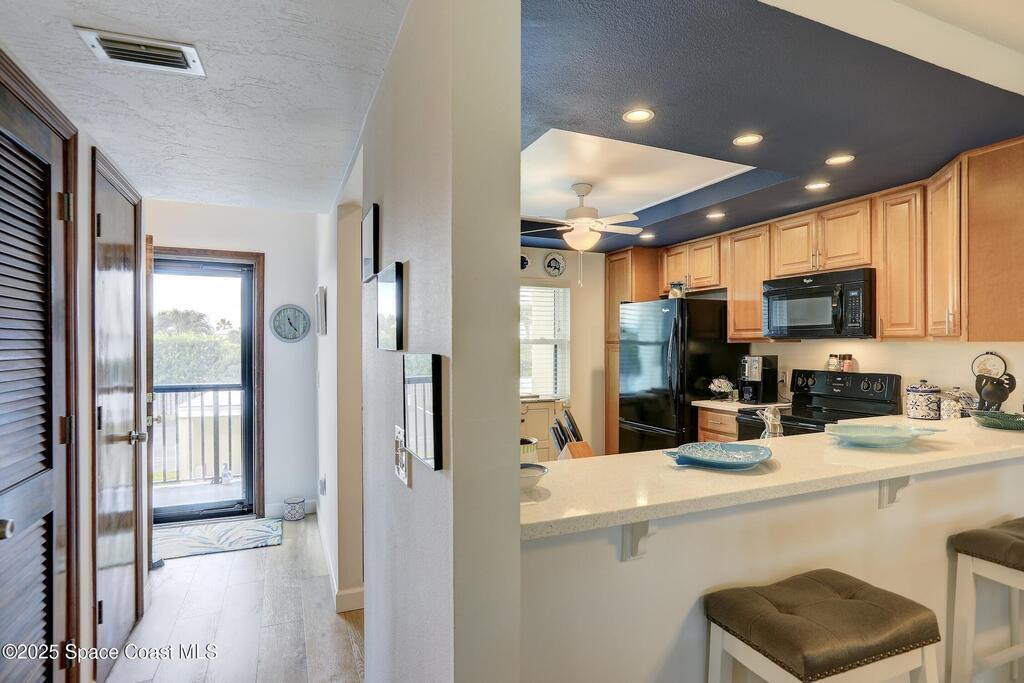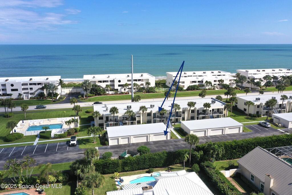 Beautifully remodeled and rarely available unit in the 2 story building of Breakers West! This 2nd-floor condo with a partial ocean view is just steps from the beach and offered turn-key fully furnished - perfect for embracing the Florida lifestyle in tranquil Melbourne Beach. Features include luxury plank vinyl flooring throughout, a screened patio perfect for sipping morning coffee, a happy hour cocktail or watching the amazing nearby rocket launches, hurricane Impact sliders & windows with additional shutters for peace of mind, updated walk-in showers in both bathrooms, in-unit laundry, a garage space with extra storage, and ample additional parking. Community features a heated pool year-round and is a short bike ride to Riverfront Ryckman Park, dining, shopping, and the best of what Melbourne Beach & Indialantic have to offer!