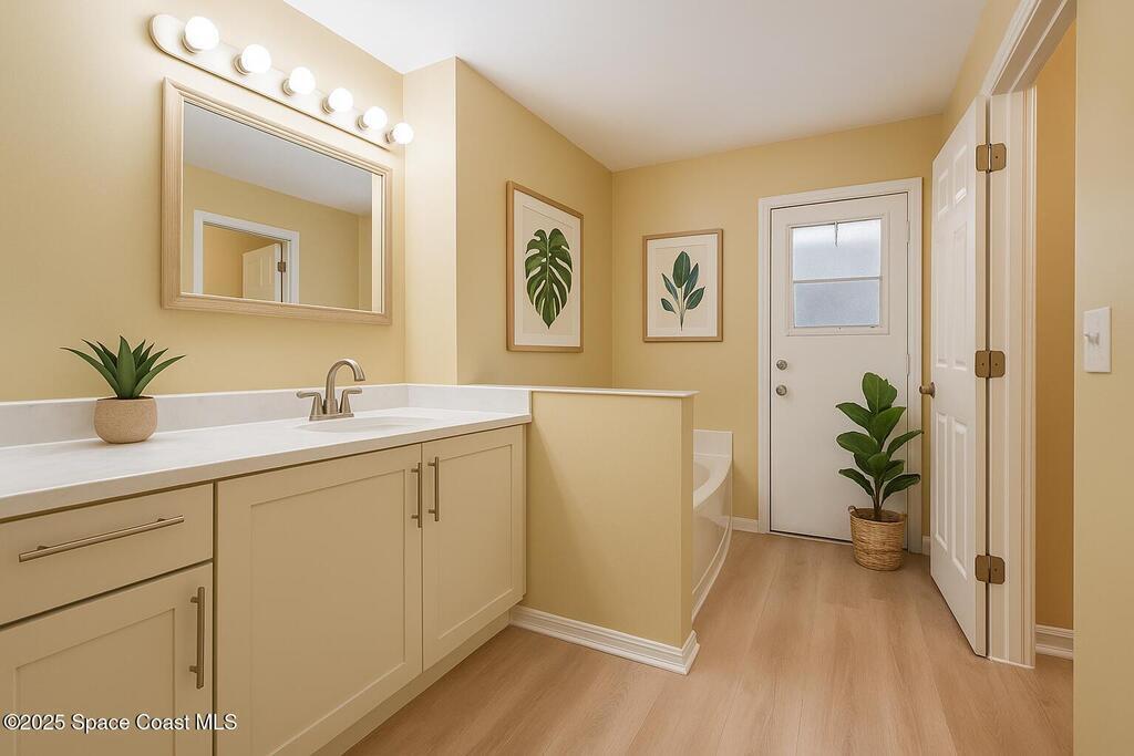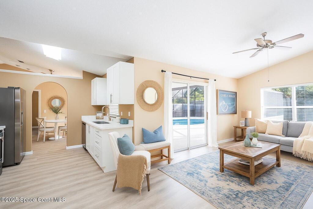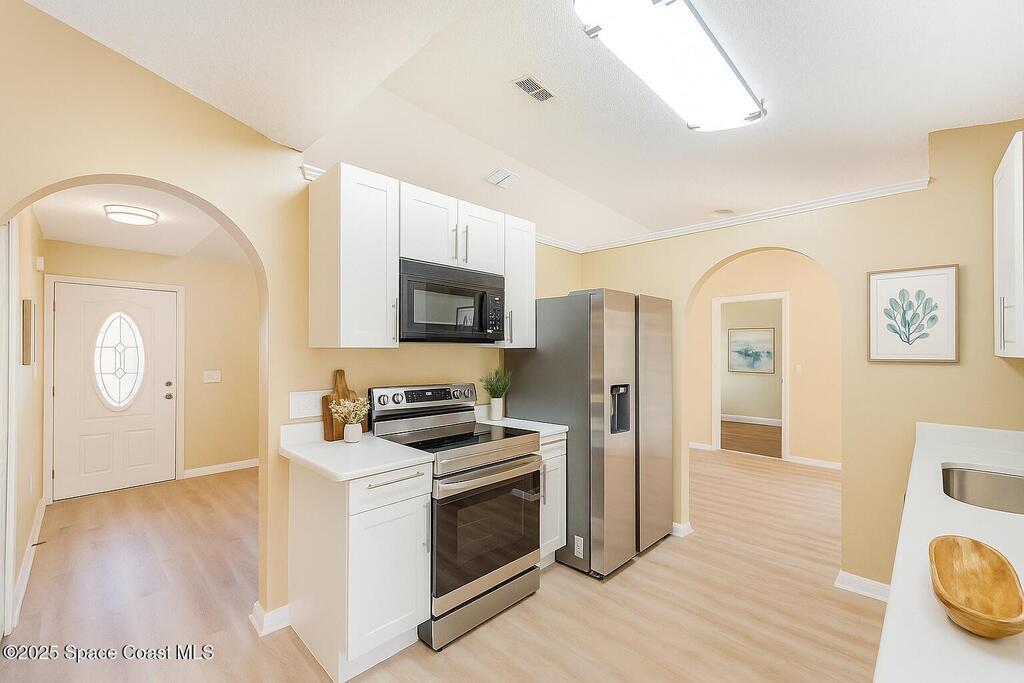 Beautifully updated 3-bedroom, 2-bath concrete block pool home in desirable Port St. John! This turn key home features new LVP flooring, fresh exterior paint, kitchen and bathroom cabinetry, quartz kitchen countertops, appliances, commodes, light fixtures, water heater, and garage door opener. Major big-ticket improvements include a whole-house repipe and a roof in 2015. The bright, open layout flows to a screened lanai overlooking the private in-ground pool--perfect for year-round Florida living. Located close to the river, beaches, schools, shopping, and dining, and only 15 minutes to Kennedy Space Center, 30 minutes to Orlando International Airport, and 40 minutes to theme parks. Hurricane shutters, durable block construction, and a 2-car garage complete this fantastic Space Coast home! Some photos are AI Generated for staging, decor and seasonal potential, they are labelled with AI in photo description.
