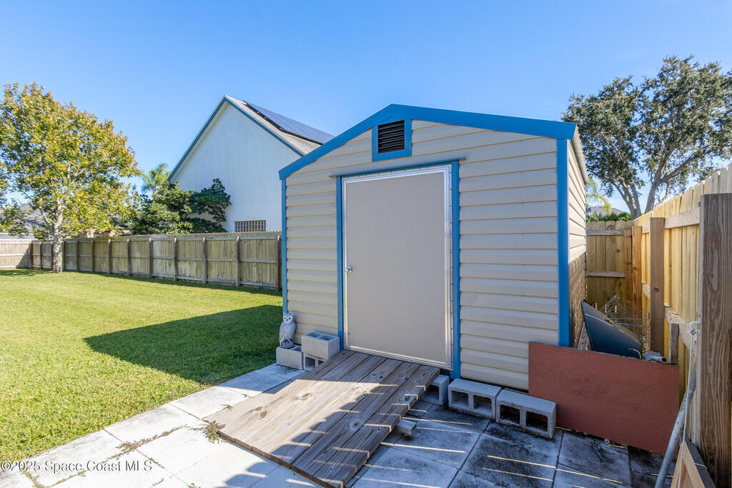 MOTIVATED SELLER!!!! Custom built 4 bedroom 2 bath oversized 2 car garage concrete block home. Major upgrades included are: BRAND NEW IMPACT HURRICANE WINDOWS, ROOF, A/C, WATER HEATER, GRANITE COUNTERTOPS IN KITCHEN AND LARGE SHED WITH MATCHING ROOF IN BACKYARD. PLENTY OF ROOM FOR A POOL!!!! Open floor plan that flows effortlessly onto the large screened in back porch. The owners retreat offers a separate garden tub and shower + oversized walk in closets. Laundry room includes a tub and custom cabinetry over the washer/dryer area. Step outside to view the rocket launches from your very own backyard! This beautiful home is in pristine condition!!! 40 minutes to Orlando and 25 minutes to the world's most famous beach.