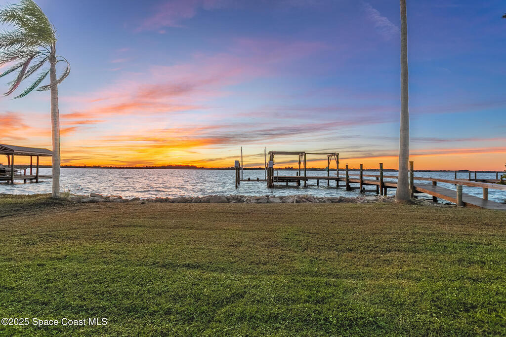 Seeking peace, privacy, and premium waterfront living with spectacular sunsets? You will experience some of the most amazing sunsets in this tastefully remodeled riverfront home.This home has been remodeled from roof to floors in 2016 with several more recent updates, creating a perfect blend of comfort and peace of mind. This home is perfectly positioned on the west side of Newfound Harbor, the desirable Sykes Creek side, offering quick and easy access to the Banana River. A true fisherman's dream, cast a line right off the end of your private boat dock while enjoying dolphins, manatees, and other wildlife that visit your backyard. Drop your kayak into the water from the dock's launch platform and paddle alongside the incredible wildlife that makes Sykes Creek home. Enjoy the peaceful, protected setting of Sykes Creek while still being just a short distance from open water, ideal for anglers, boaters, and anyone who wants effortless riverfront living. Updated circular paver driveway