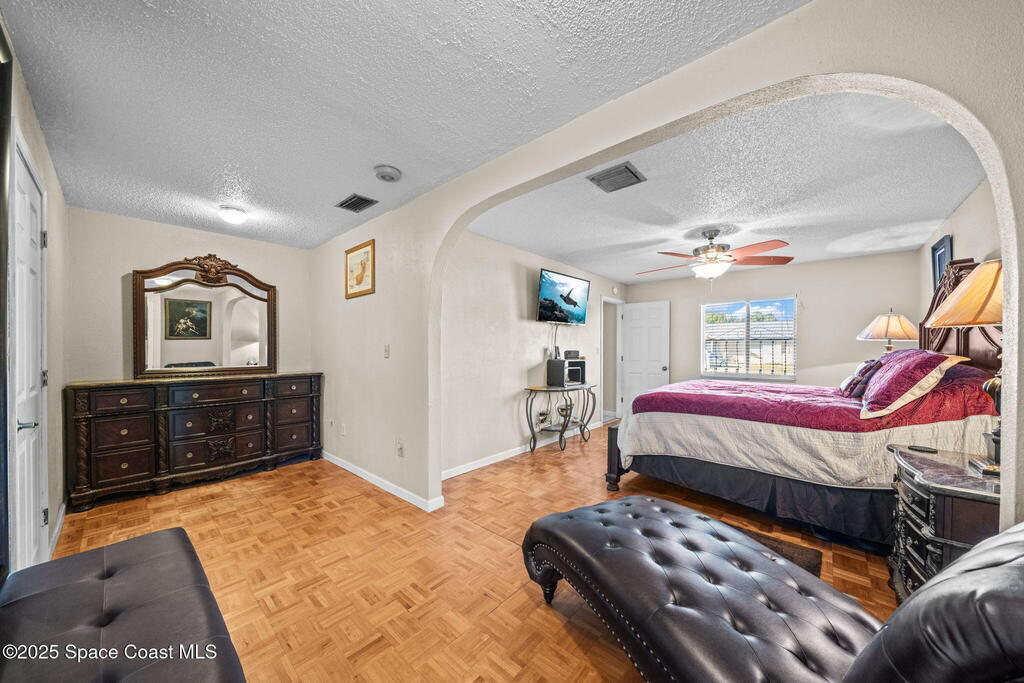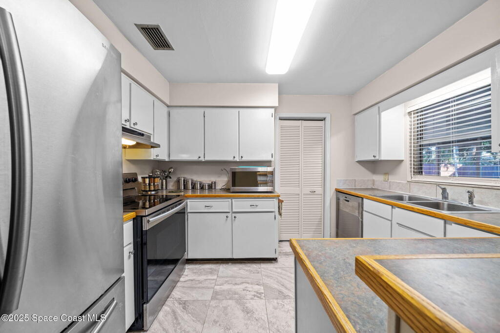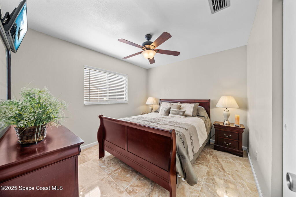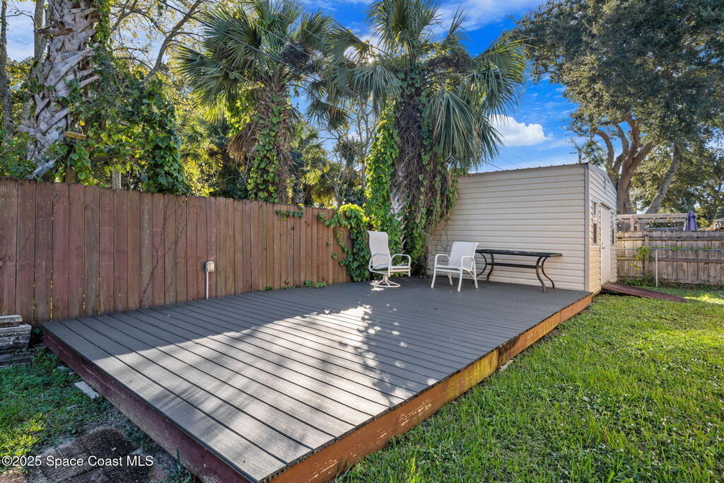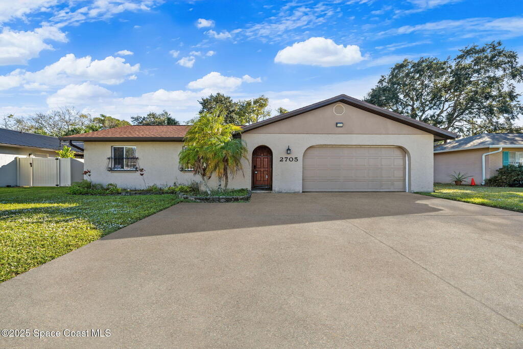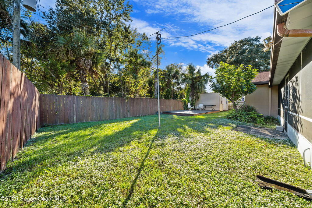 This spacious 4-bed, 2-bath home features a desirable split floor plan, offering a private primary suite with a cozy sitting area and direct access to the screened patio through the en-suite bath. The kitchen comes equipped stainless steel appliances and a convenient pantry. Outside, you'll appreciate the recently cleaned oversized driveway with plenty of parking. Enjoy rocket launches from your private, fully fenced backyard that comes complete with an outdoor shower, 12x16 shed and attached composite deck ideal for storage, hobbies, or creating the outdoor retreat you've been dreaming of. Don't miss the chance to make this home yours!