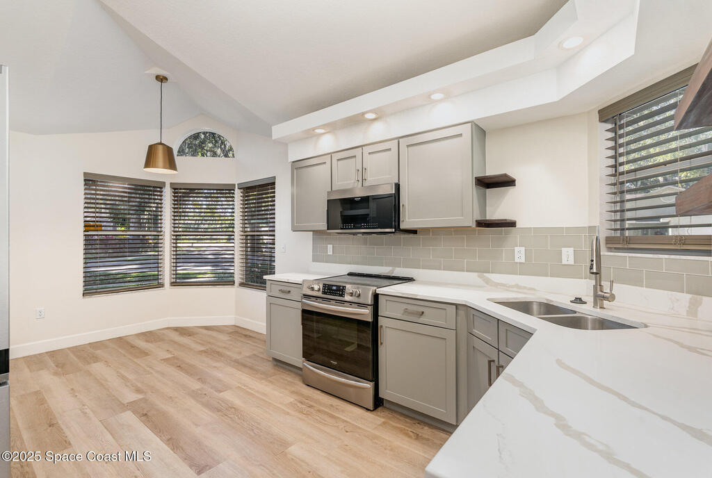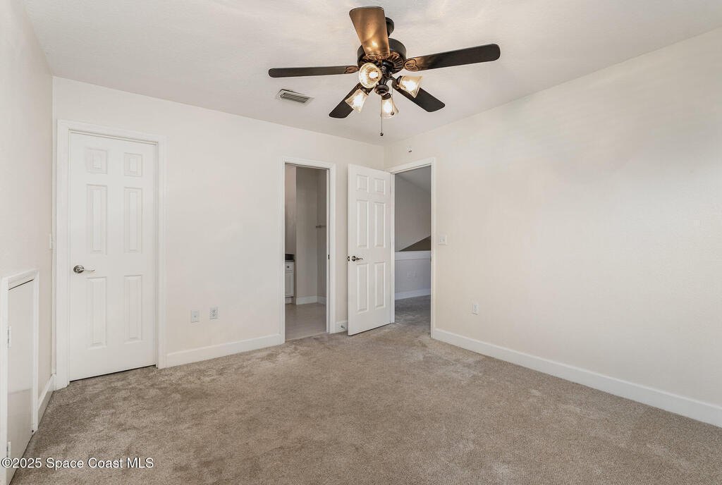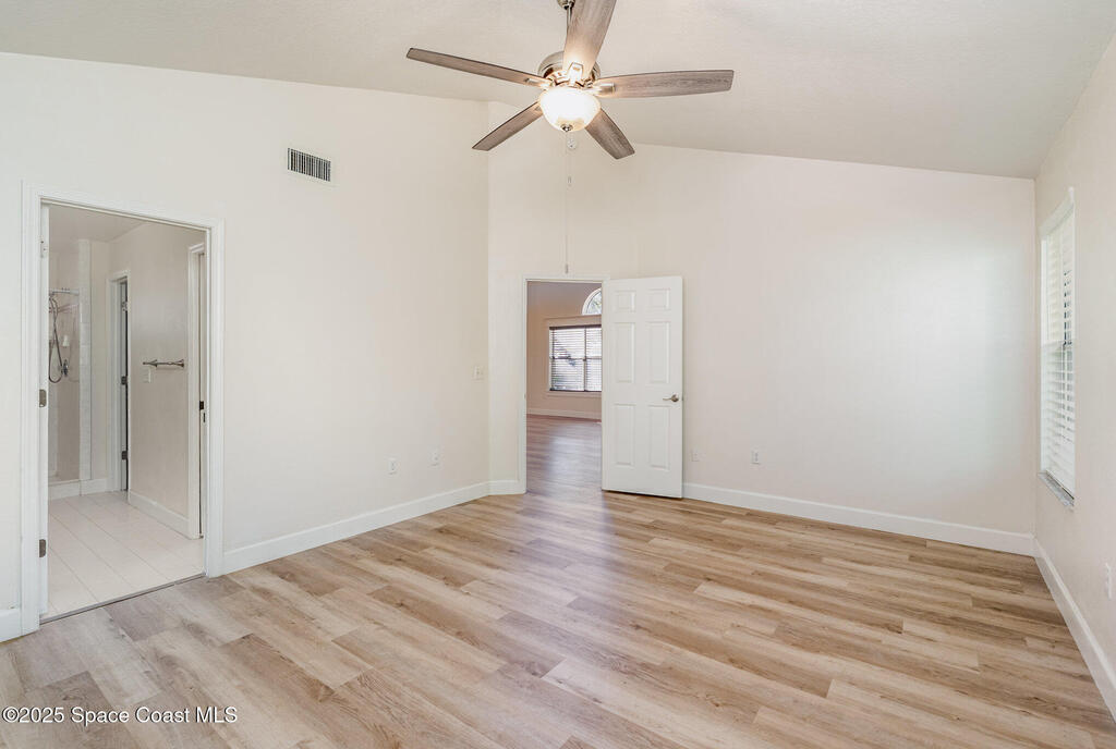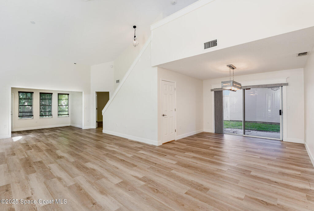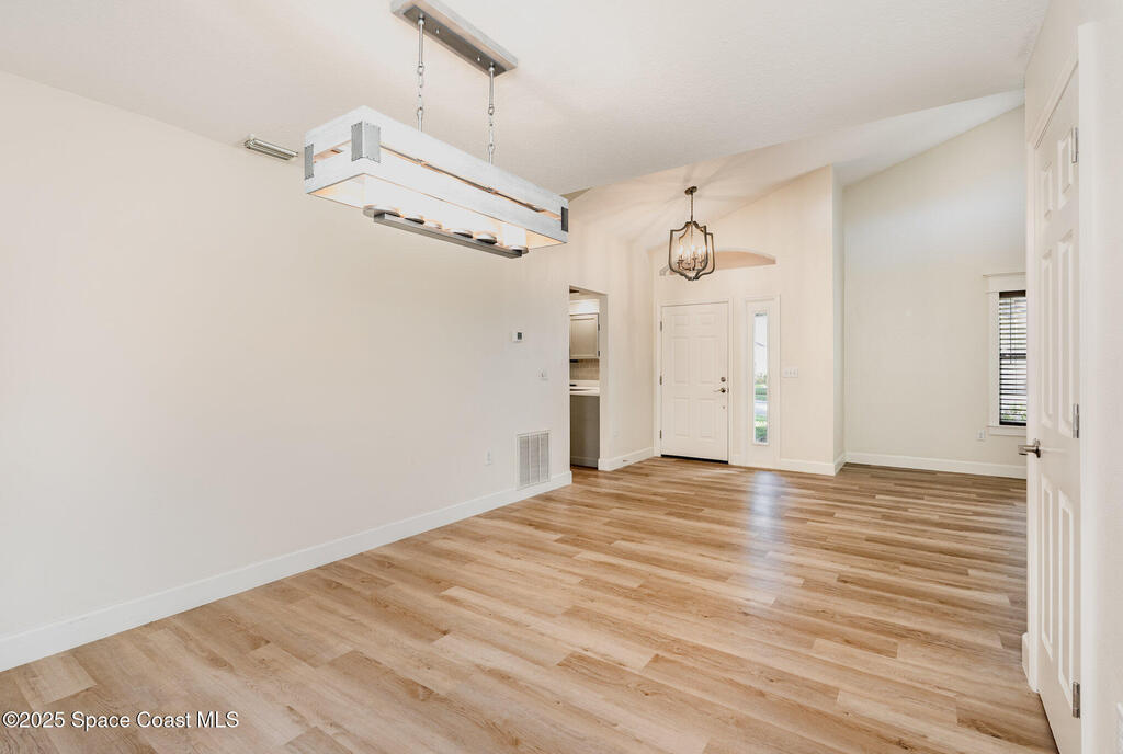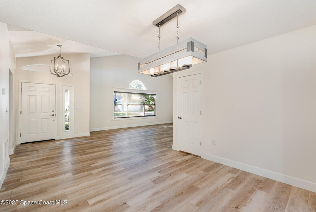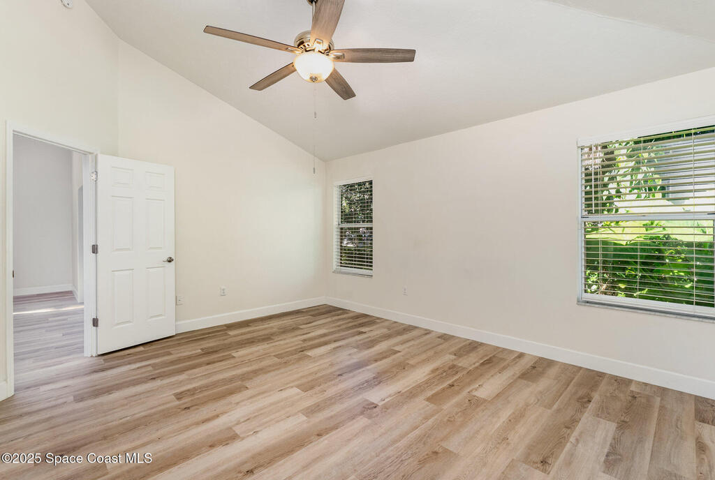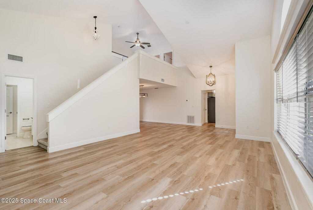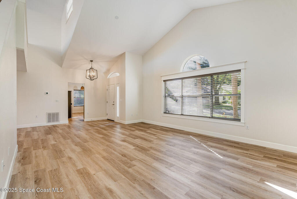 Welcome to Village Woods, a gated and tree-lined community that feels lush and serene. This beautiful home with BRAND NEW ROOF offers a rare primary bedroom on the first floor, with two additional bedrooms, a full bath, and an extra loft upstairs--perfect for guests, hobbies, or a home office. The spacious living room with formal dining area provides an inviting layout for entertaining. Just off the living room, enjoy a sunlit enclosed bonus room, ideal as a den, office, or creative space. The updated kitchen features high-end finishes, modern cabinetry, a wine fridge, and is just off the living areas for easy flow. The HOA covers lawn service, offering low-maintenance living, and you're just a short walk from La Cita Country Club for golf, dining, and social events. Located minutes from I-95, local beaches, and major employers such as Kennedy Space Center, SpaceX, and Blue Origin, this home blends comfort, convenience, and lifestyle! Some pictures are virually staged.
