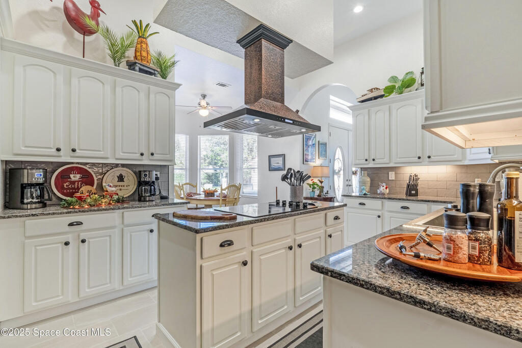 A beautiful custom-built home in private Hunter's Green, a well sought after neighborhood in La Cita. This one story custom designed home has sizable windows for plenty of natural light with lofty ceilings. The main entrance opens to an elegant arched foyer and an open living room, as well, a wine room that is designed for entertaining. The gourmet kitchen has granite, state of the art appliances and a stunning copper range hood over the cooktop center island. The large Florida room is bright and airy and opens to the living room through elegant glass doors as well as to the outdoor terrace. The spacious primary bedroom has a walk-in closet and luxurious ensuite with a clawfoot tub and oversized shower. With a split floor plan, the two guest bedrooms are private with an updated bathroom and additional storage. The back terrace is a smartly designed with an outdoor shower. This home has a large 2 car & golf cart garage; the golf cart being included in the sale of the home.