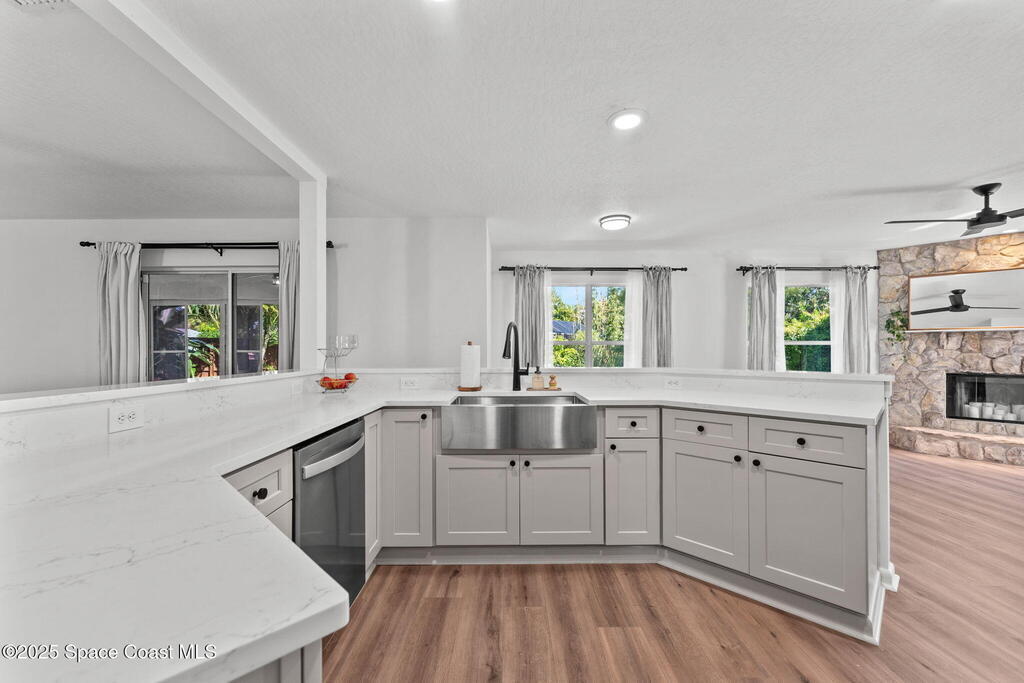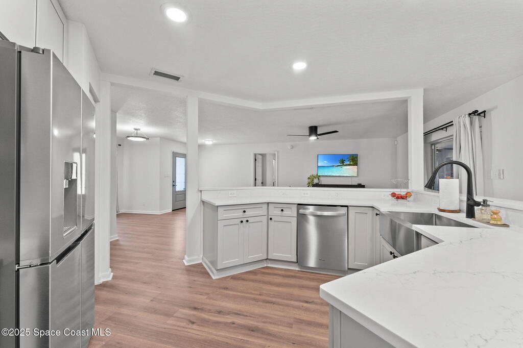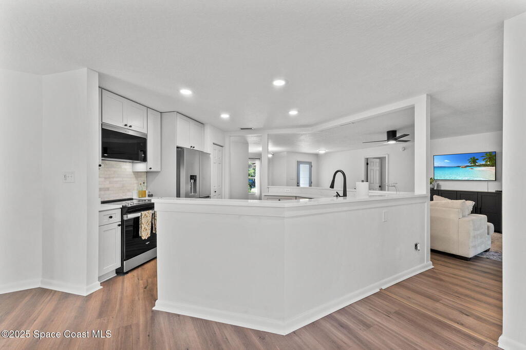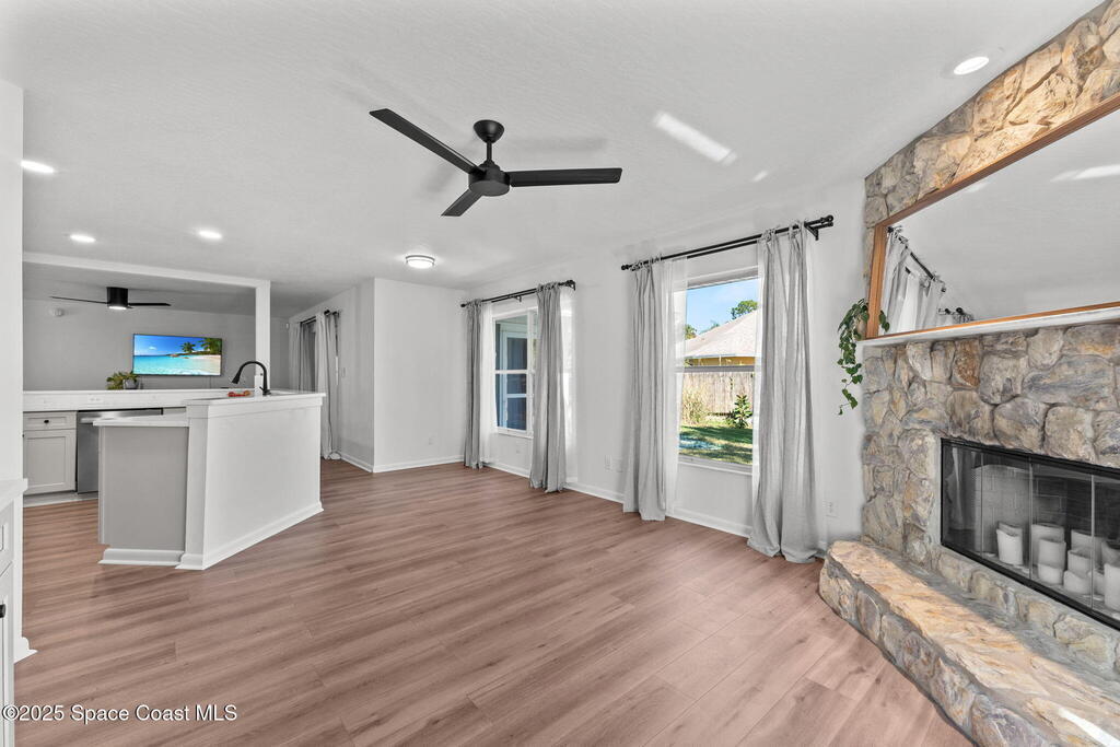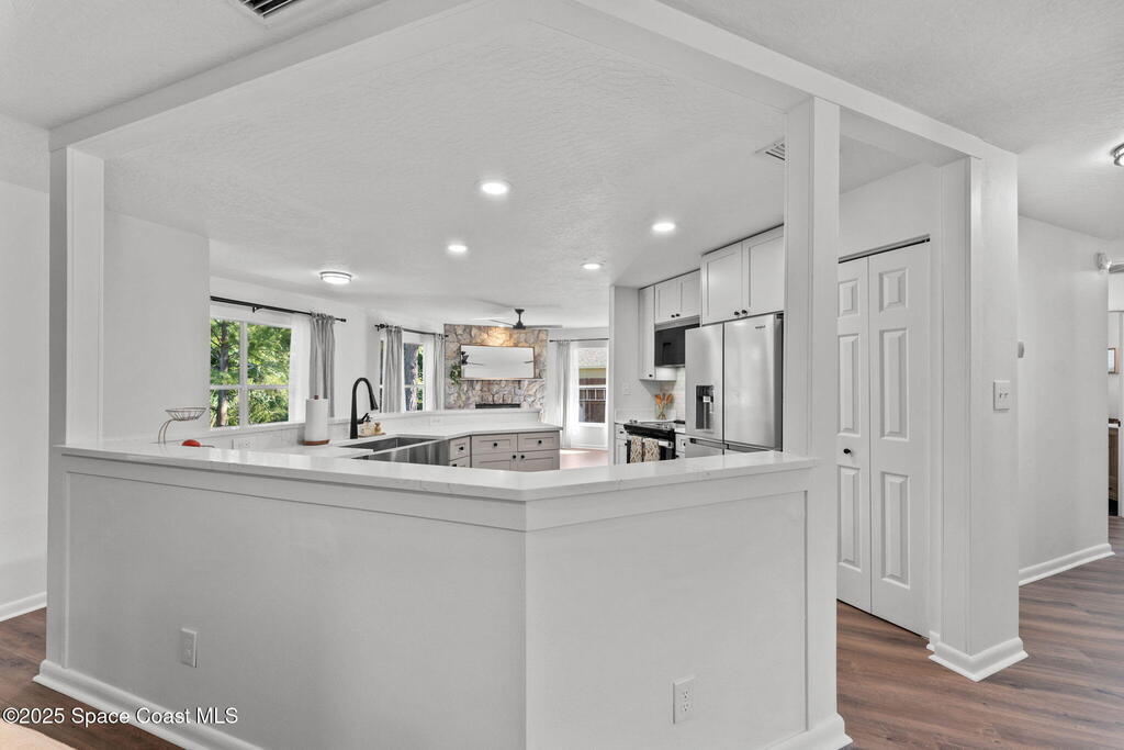 Beautifully remodeled from top to bottom, this 3BR/2.5BA Rockledge home sits on a peaceful .26 acre lot with a quiet nature preserve behind it. Inside, the home feels fresh and modern with new flooring, updated lighting, and a bright open layout that makes every space feel welcoming. The kitchen has been fully updated with new cabinets, countertops, sink, and appliances, while both bathrooms have been transformed with clean, contemporary finishes including a new walk-in shower in the primary suite. Outside, enjoy a freshly updated exterior, manicured landscaping, new gutters, extended walkways, exterior lighting, Ring doorbell, and motion lights. Additionally the home includes a Generac 7.5KW generator, newer electrical panel, ADT system, and hurricane shutters. Spacious side yard offers room for boat or RV parking. HVAC 2015. A truly move-in-ready home in a quiet, established neighborhood. Book a private showing today!