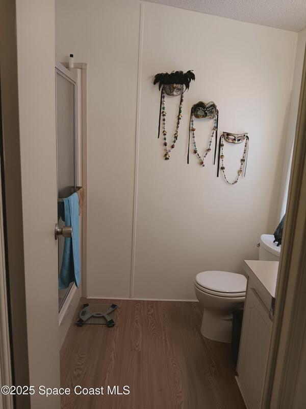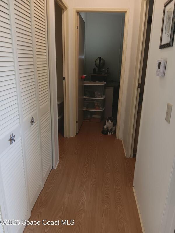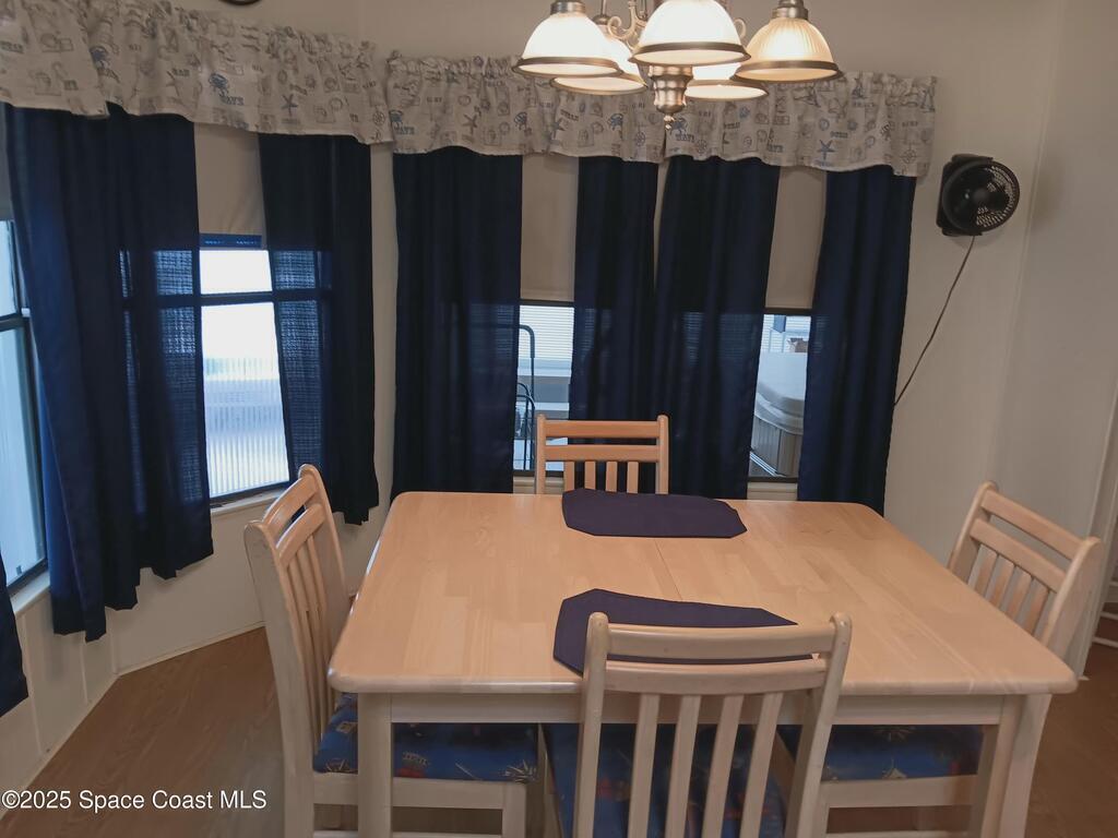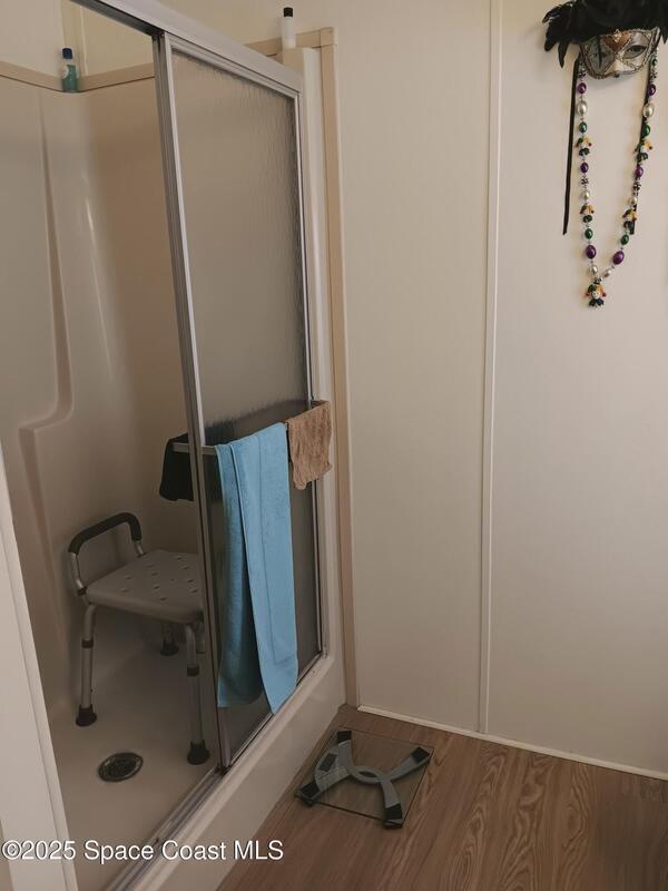 Enjoy the enclosed front porch withTherapeutic spa to ease away sore muscles or relax with family and friends. Many updates thru out the home include air conditioner 2021, skylights 2021, entry door 2024, vapor barrier and tie downs 2020, tung and groove flooring, new washer, new hot water heater, porcelain sinks and toilets. Updated plumbing. Easy to use Hurricane retractable adjustable shutters Barefoot Bay offers many amenities including 3 pools and golf course. Something for all ages. Best of all you own the land!