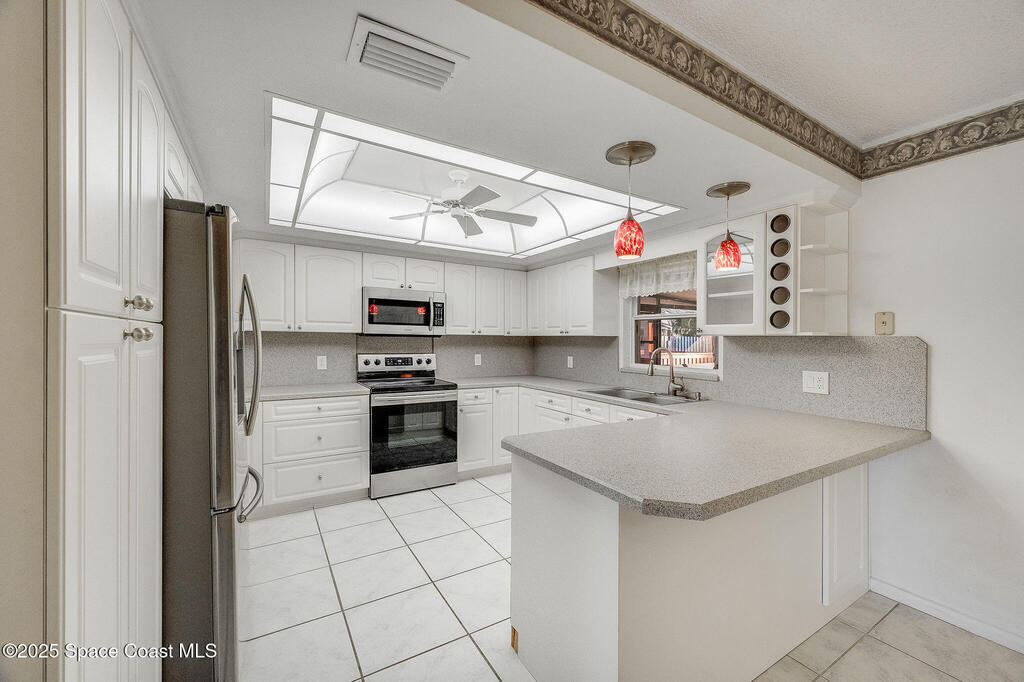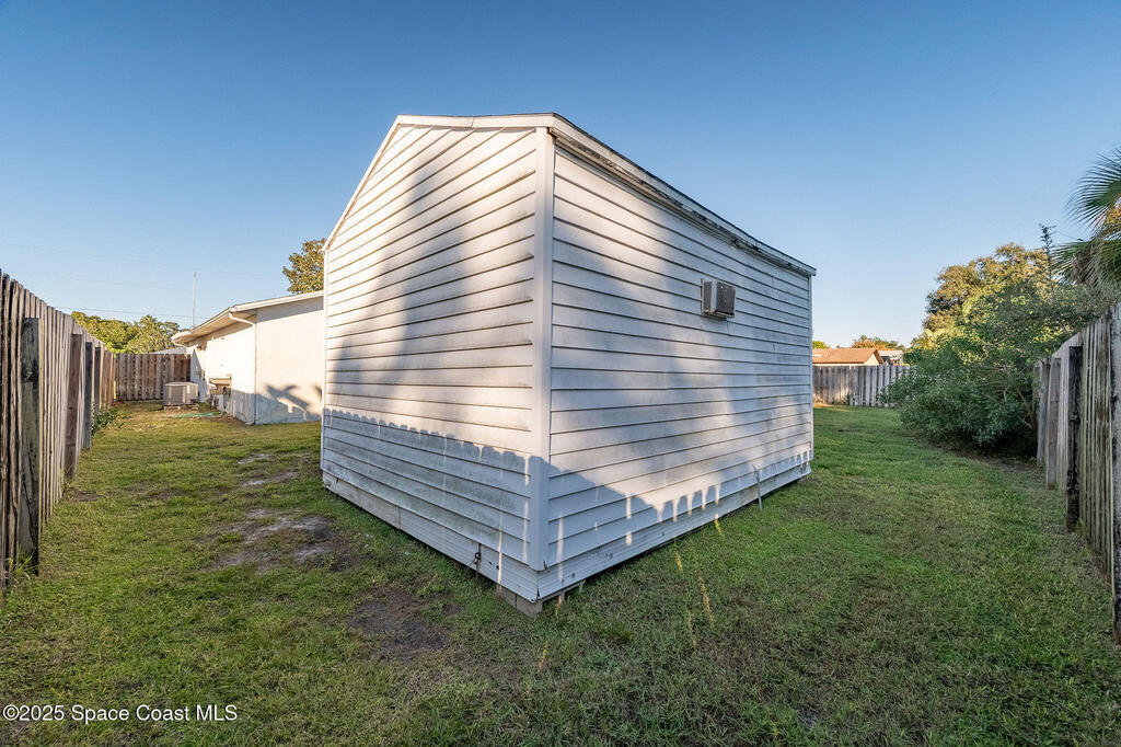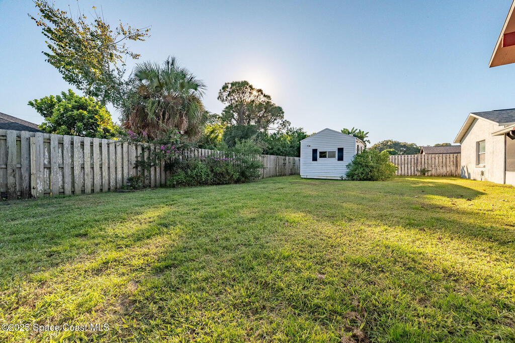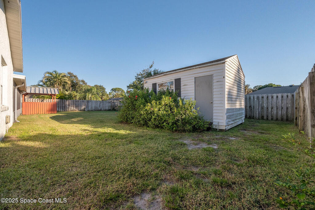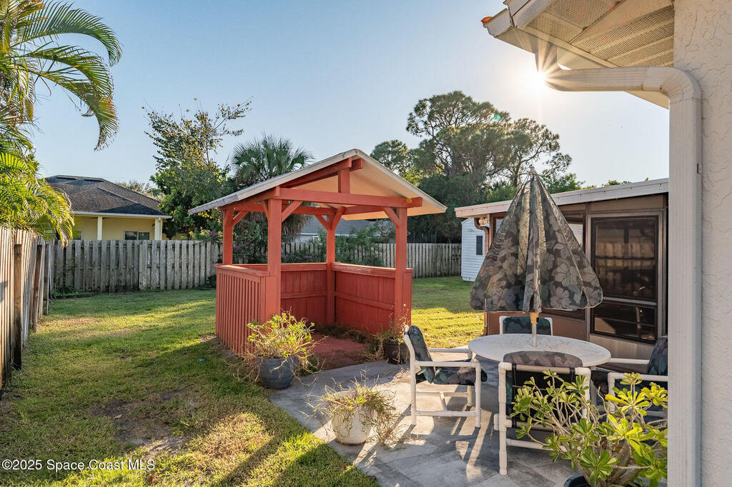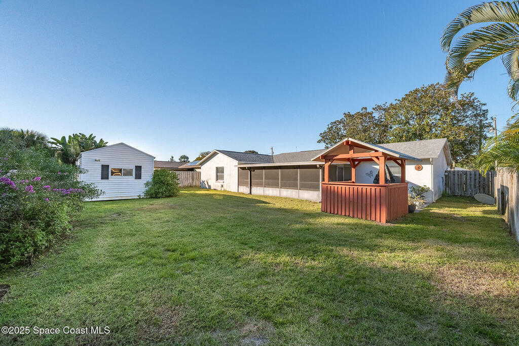 Discover this well-cared-for, move-in-ready 3-bedroom, 2-bath home in the heart of Rockledge. This accommodating split floor plan features a spacious primary bedroom and an open living area that flows seamlessly into a large dining room and nicely sized kitchen. Enjoy peaceful mornings and breezy evenings on the over-sized 14 x 25 screened patio, complete with vinyl windows.Step outside to your private backyard oasis! A fully fenced yard with a storage shed and a charming gazebo, perfect for creating your ideal grilling or entertainment space. Roof 2018, AC 2017, water heater 2016, new smart thermostat and irrigation pump.Centrally located in Brevard County, you'll love the easy access to beaches, shopping, I-95, and a short drive to Orlando