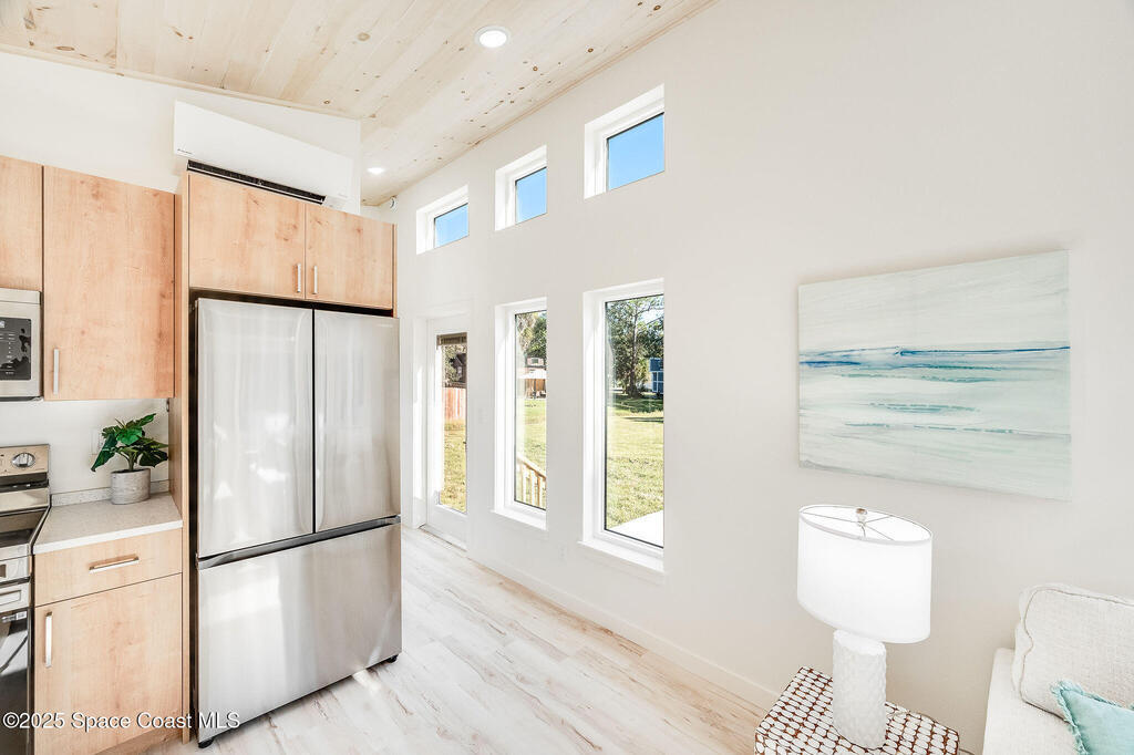 Movable Roots crafts homes that are as tough as they are beautiful. The Atlas is designed to Florida Building Code and rated to withstand 180 mph hurricane winds, with metal roofing, high-performance spray-foam insulation, and impact-resistant windows and doors-all working together to keep you safe, secure, and comfortable year-round.Inside, elegance meets everyday living: Vaulted ceilings with tongue & groove stained wood for warmth and character; Quartz countertops and American-made soft-close cabinetry, Full Stainless Steel kitchen appliance package, including washer and dryer--truly move-in ready.At 585 square feet, the Atlas delivers a spacious 1-bedroom, 1-bath retreat with an open living and kitchen flow that feels expansive, airy, and effortlessly coastal. Despite its modest size, it delivers big on style, safety, and sophistication.