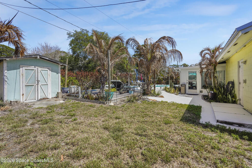 This 3-bedroom, 2-bath home offers 1, 297 sq ft of updated living space with a functional layout. The renovated kitchen features quartz countertops, stainless steel appliances, and a Cafe gas oven, opening to the main living area.Major updates include a 2018 metal roof, 2016 HVAC, 2023 water heater, and gas heating. The back porch features glass sliders for enclosed or screened use year-round.Step outside to your private backyard and relax by the pool in the in-ground saltwater pool with sun shelf, plus ample space for seating and entertaining. RV/boat parking adds flexibility for storage and Florida living.Not in a flood zone, Rocket launch views, Spacious, usable yard! Schedule your showing today.