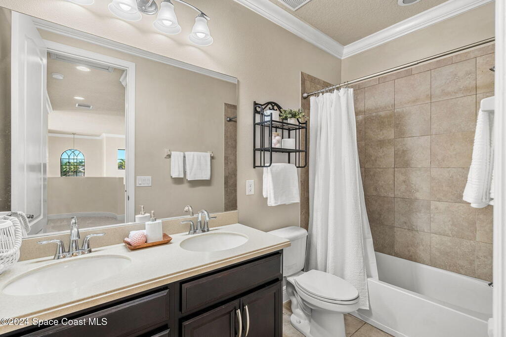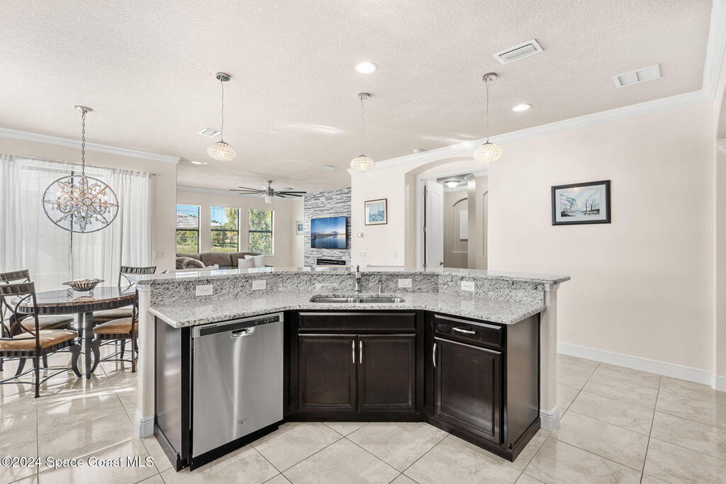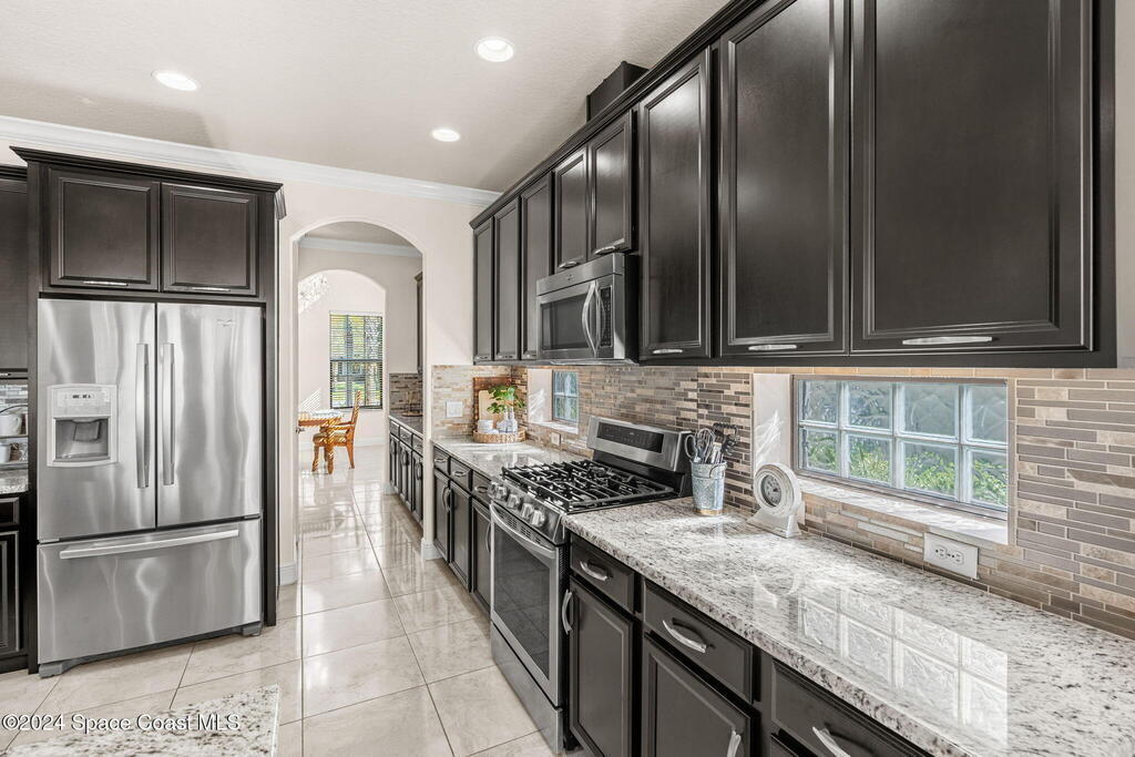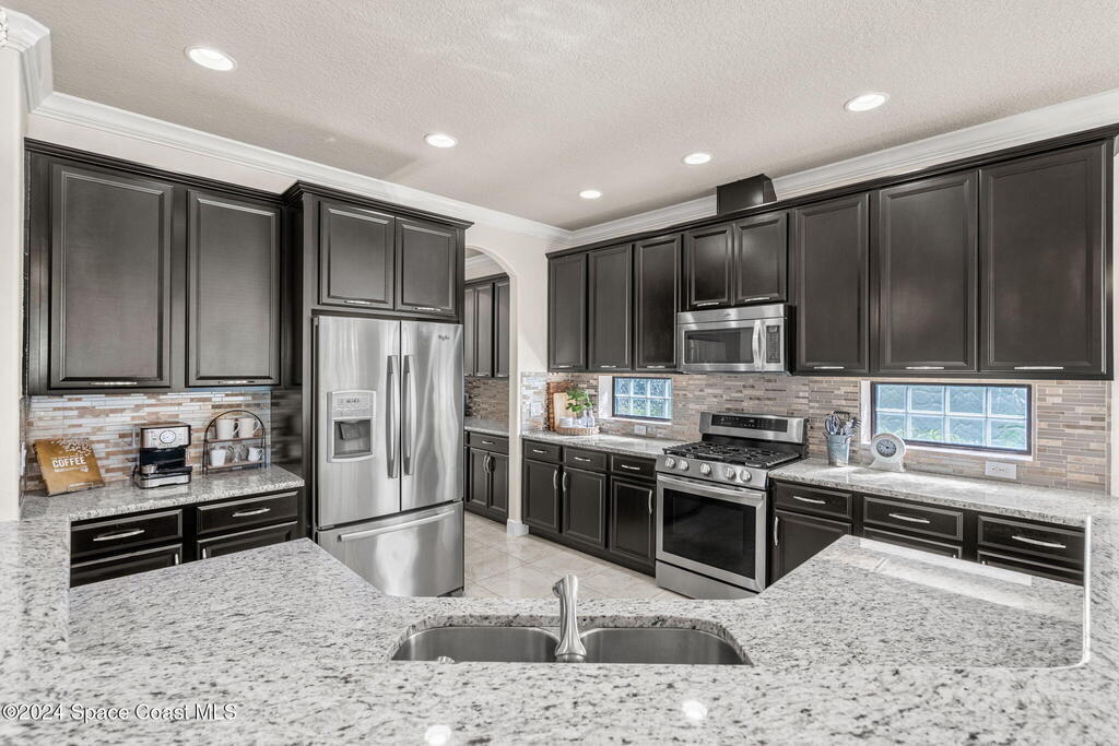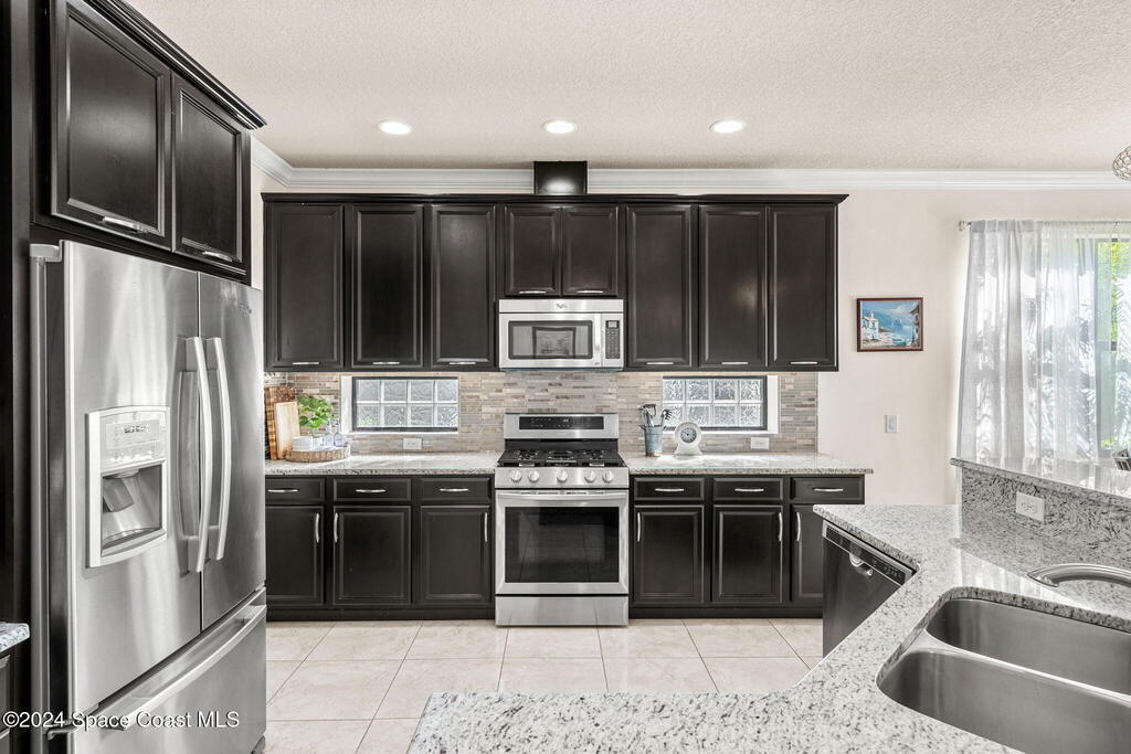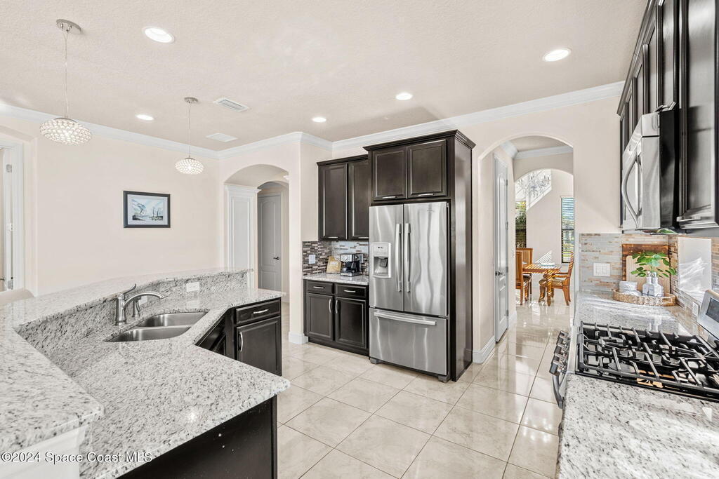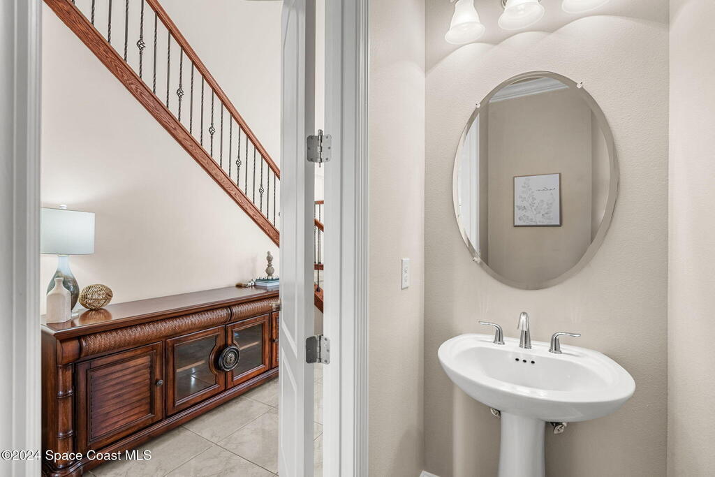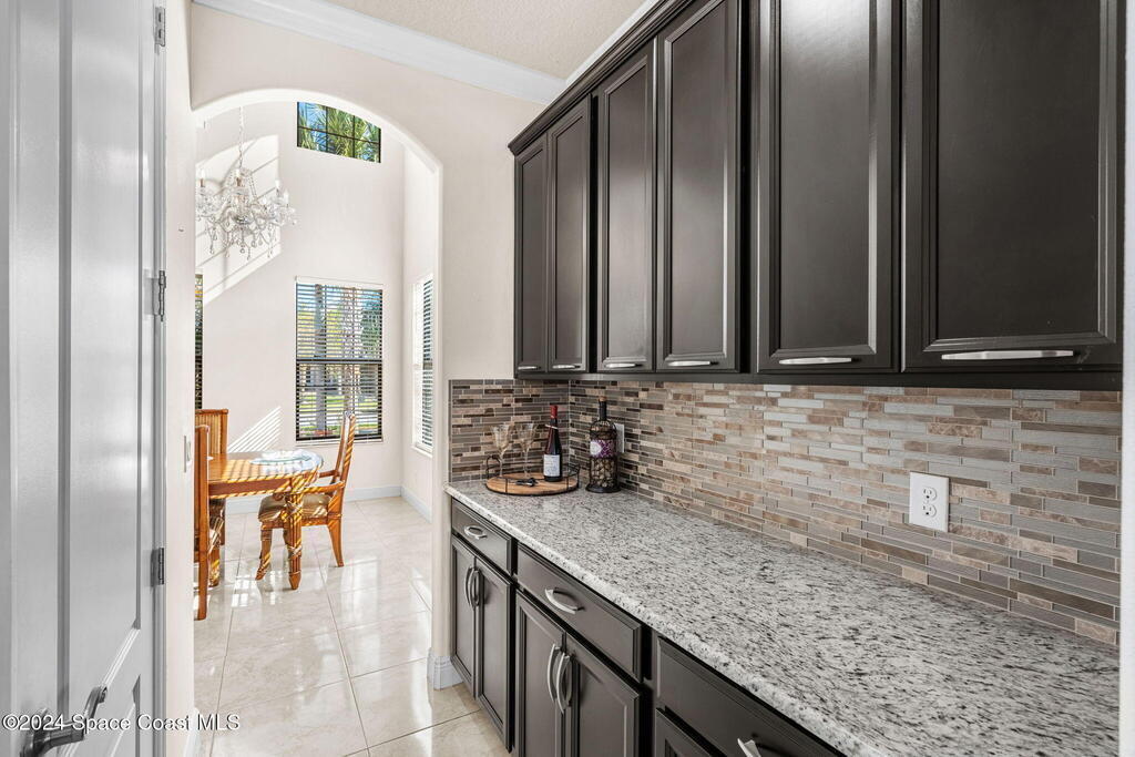 Brand NEW ROOF just installed! Located in the prestigious Strom Park in West Viera, you'll find this beautiful 5 bedroom two story home. We are calling this one ''Peace on the Pond'' with its' gorgeous lot offering incredible sunsets, along with tranquil lake and natural views. Built in 2015 with over 3100' square feet of living space, there is plenty of room for the whole family to relax, entertain and enjoy. Well appointed with upgrades such as granite, 8' doors, crown molding, rich wood cabinetry, custom closets, glass tile accent walls, and an electric feature fireplace. An open layout, multiple living and dining options and abundant storage allows elegance to meet practicality. Downstairs you'll find the Primary suite along with a second bedroom/en-suite~perfect for multi-generational living, home office or gym. One of the 3 upstairs bedrooms is oversized and used for a Home Theatre (all equipment conveys!) Impact windows on the front of the home and the second story.