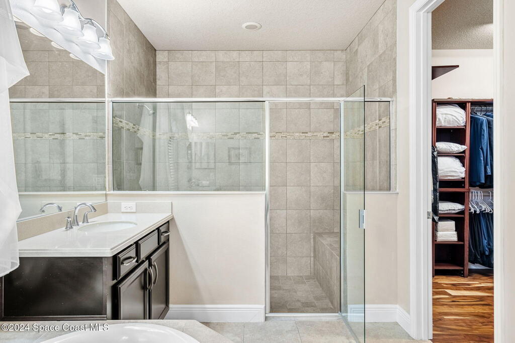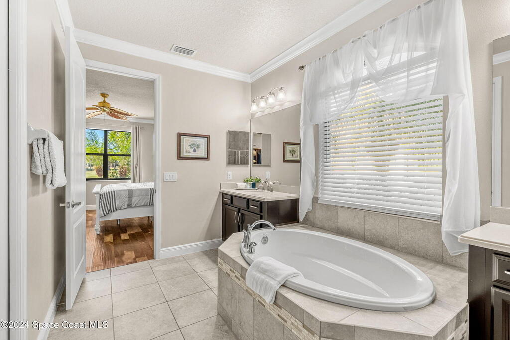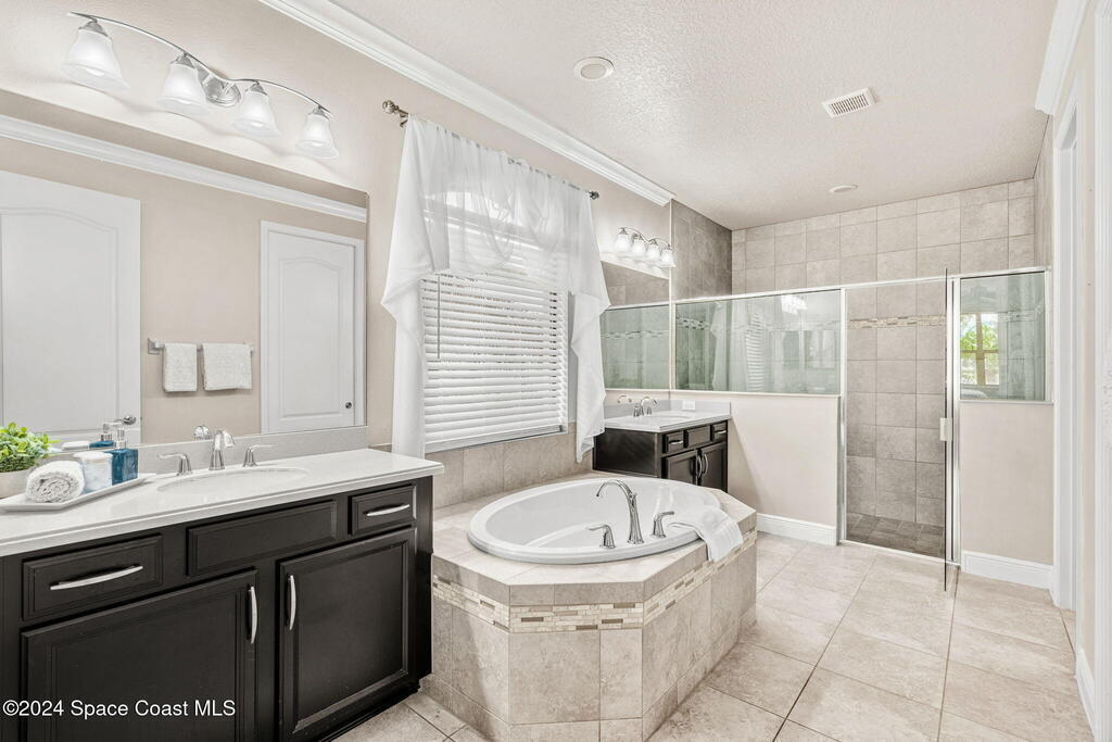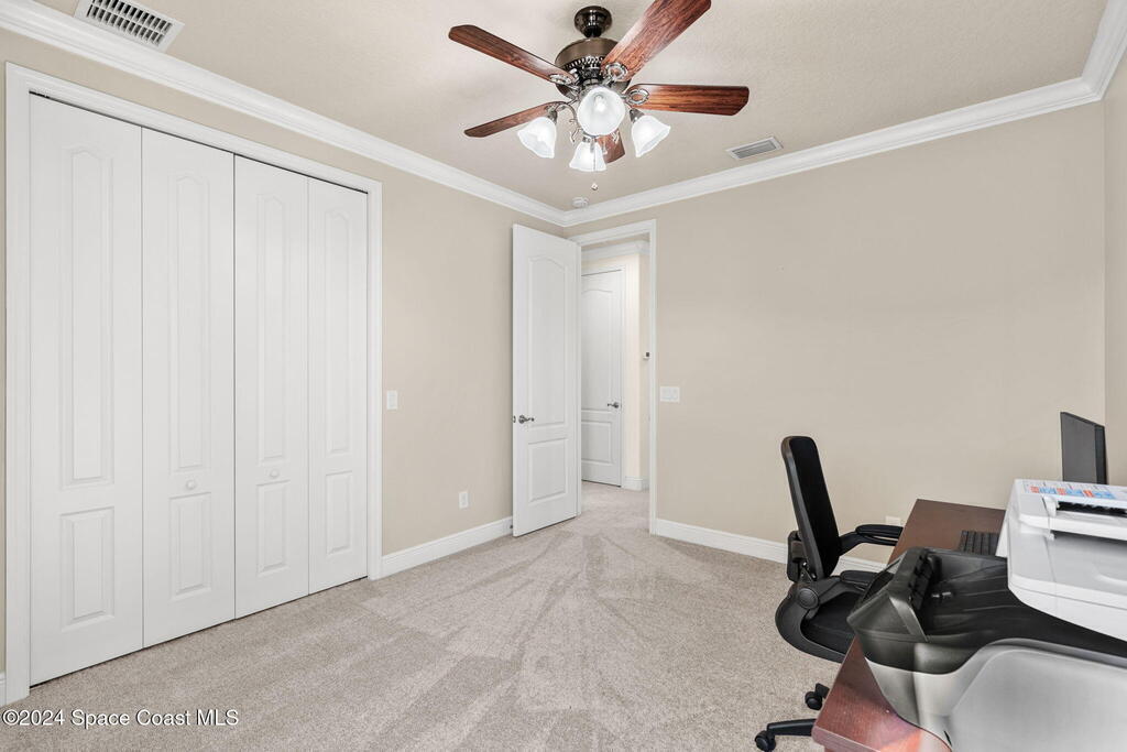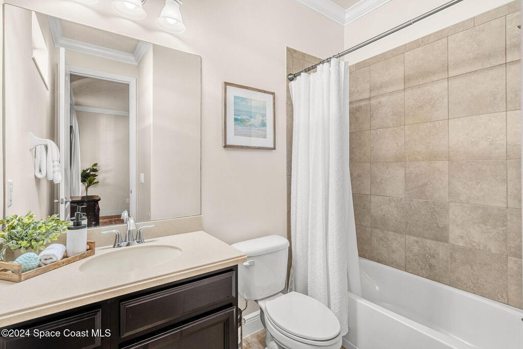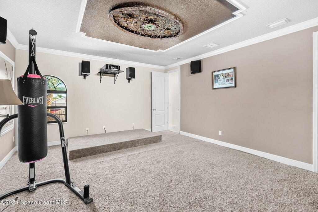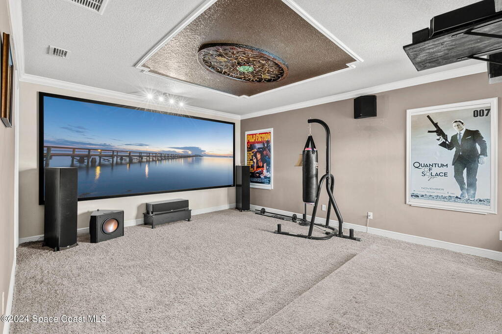 Brand NEW ROOF just installed! Located in the prestigious Strom Park in West Viera, you'll find this beautiful 5 bedroom two story home. We are calling this one ''Peace on the Pond'' with its' gorgeous lot offering incredible sunsets, along with tranquil lake and natural views. Built in 2015 with over 3100' square feet of living space, there is plenty of room for the whole family to relax, entertain and enjoy. Well appointed with upgrades such as granite, 8' doors, crown molding, rich wood cabinetry, custom closets, glass tile accent walls, and an electric feature fireplace. An open layout, multiple living and dining options and abundant storage allows elegance to meet practicality. Downstairs you'll find the Primary suite along with a second bedroom/en-suite~perfect for multi-generational living, home office or gym. One of the 3 upstairs bedrooms is oversized and used for a Home Theatre (all equipment conveys!) Impact windows on the front of the home and the second story.