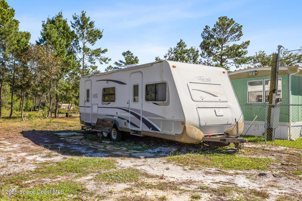 BRING YOUR TOYS! Room for EVERYTHING! It is your chance to own a private retreat on almost 2 acres that is fully fenced in! This home has been completely updated and comes with an indoor laundry/utility room, a new screened in patio, a deluxe metal carport, a large metal storage building, a detached office/studio/guest room with A/C and electric, another storage shed and a titled 26ft travel trailer with hookups for other family or guest! Raise chickens and ducks or get yourself that mini donkey you have always wanted! The possibilities are endless! You will have a front row seat to witness thrilling rocket launches from your back yard! Just minutes away from boating, fishing, hiking, birdwatching and beaching at Merritt Island Wildlife refuge and Canaveral National Seashore. Only 18 minutes to Kennedy Space Center! Financing is available with preferred lender and 35% down