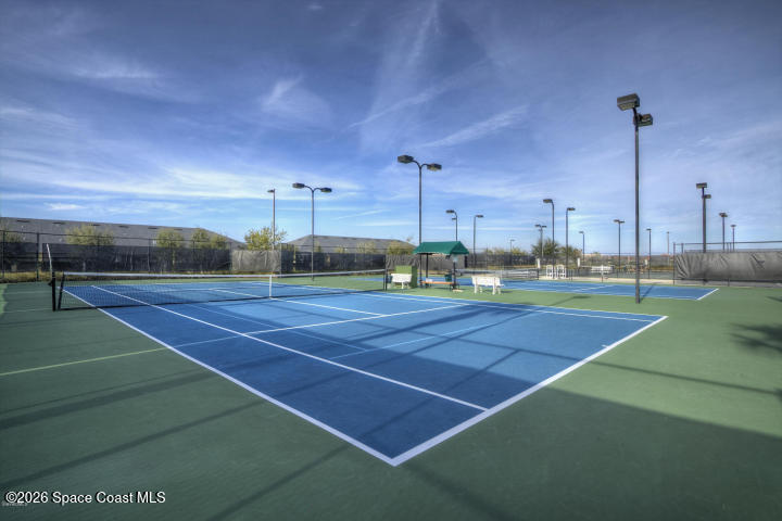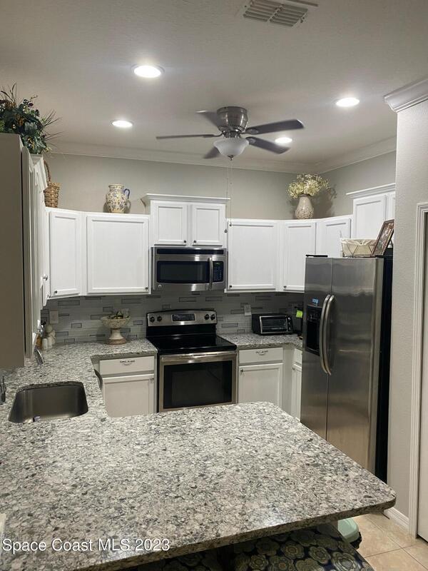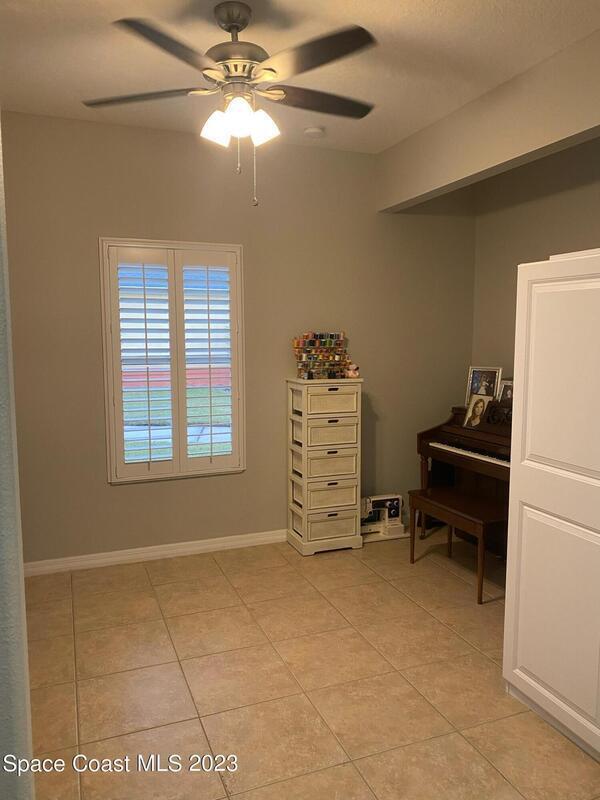 Discover Active 55+ Living in Heritage Isle's Premier Viera Community!This 2014-built end unit villa (1, 537 sq ft, 2 beds + flex room, 2 baths, 1-car garage) is updated and ready for your next chapter. Quartz kitchen counters, SS appliances, large pantry. Master with custom closet built-ins. Plantation shutters on tinted windows, accordion hurricane protection. Crown molding accents main living spaces. Screened lanai flows to paver patio beside walking trails which are perfect for morning strolls!Live vibrantly with resort-style perks: state-of-the-art clubhouse, on-site restaurant, heated pool, fitness center, daily activities. Lawn care included !