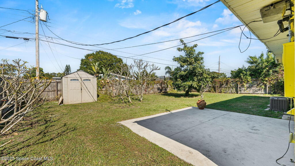 This charming 3 bedroom, 1 bathroom home is recently painted, cleaned and flooded with natural light. Enjoy peace of mind with a roof that's just 4 years old and a 2-year-old A/C unit. The split floor plan offers privacy and flexibility, with the converted carport adding a spacious third bedroom. Relax on the screened front porch or entertain on the concrete back patio. The fully fenced yard includes a double gate, ideal for parking a boat, trailer, or additional vehicle. Built-in storm shutters provide added security and storm protection. Whether you're looking for your first home, downsizing, or investing, this property is what you've been waiting for!