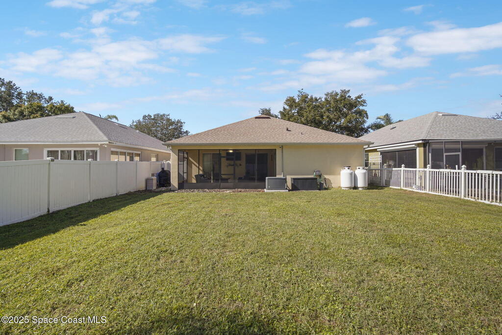 Well maintained 3 bedroom, 2 bath split floor plan home in La Cita offering over 1, 600 sq. ft. of living space. This home features granite counters throughout, impact windows, vinyl plank flooring, and an open, functional layout with a private primary suite separated from the additional bedrooms. The screened lanai provides a comfortable outdoor living space, and the backyard is fully enclosed with a vinyl privacy fence. Recent major updates include a 2024 roof, 2020 HVAC system, 2024 water heater, and a whole-home gas generator installed in 2025. Located in the desirable La Cita community, this property is move-in ready and conveniently situated near local shopping centers. Waterside at La Cita HOA includes lawn care!A short drive to the Kennedy Space Center, or watch rocket launches from your backyard! This home is truly turn key and ready for your family.