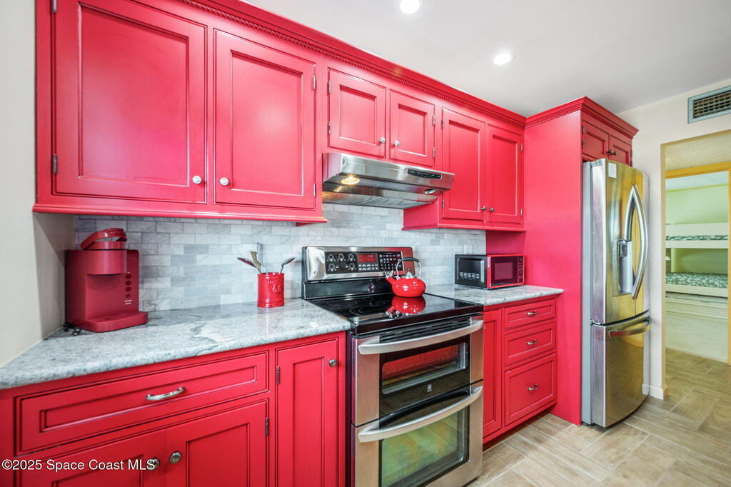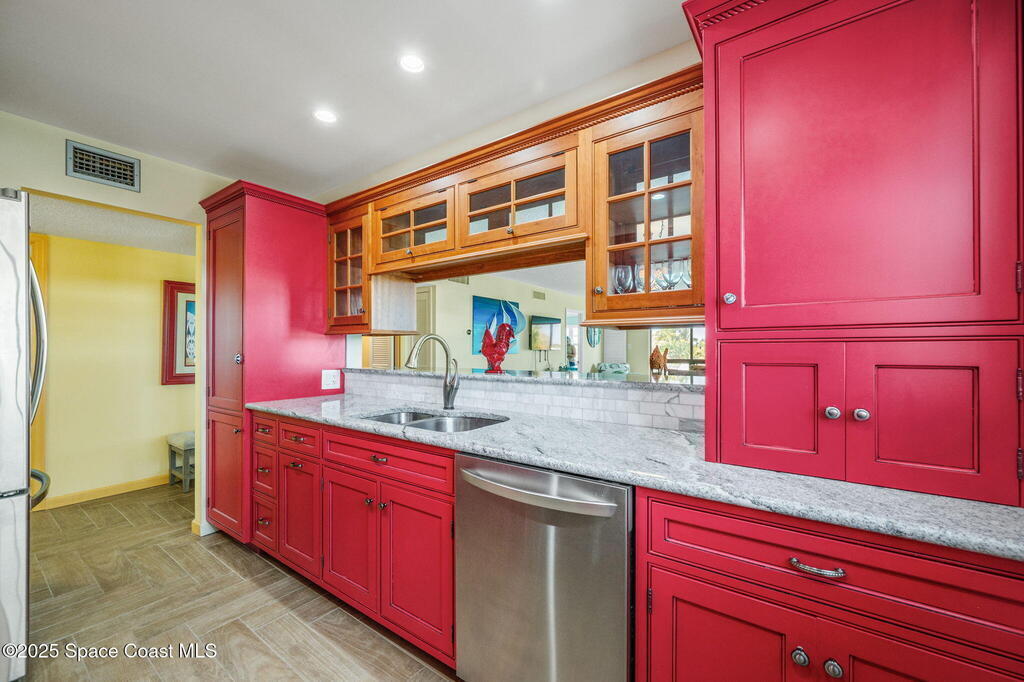 This beautifully updated 3-bedroom, 2-bath end unit in the Royal Colonial Condo offers the perfect blend of modern amenities and natural beauty. Inside, you'll find high-end cabinetry, granite countertops, and tile flooring in the main living areas, with cozy carpet in the bedrooms. The bathrooms have been tastefully updated, and the primary bedroom boasts stunning views of the canal, a spacious walk-in closet with custom built-ins, and a private slider leading to the balcony. The complex is ideally situated at the end of a large canal that leads to the Banana River, offering the perfect setting for outdoor relaxation. Spend your days fishing from the dock, watching dolphins and manatees, or soaking in the breathtaking sunsets. Kayak to nearby islands in the Banana River. Boat slips are available for a one time fee. Additional perks include a covered parking space and easy access to shopping and dining, And for a truly unique experience, watch launches from your balcony!