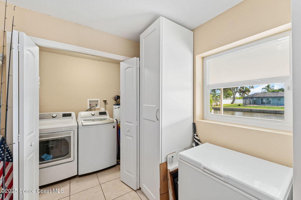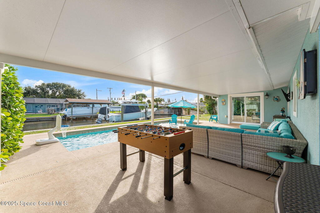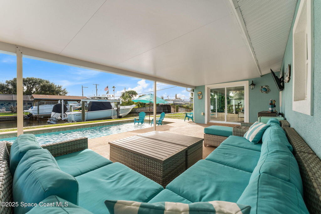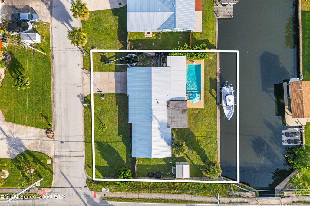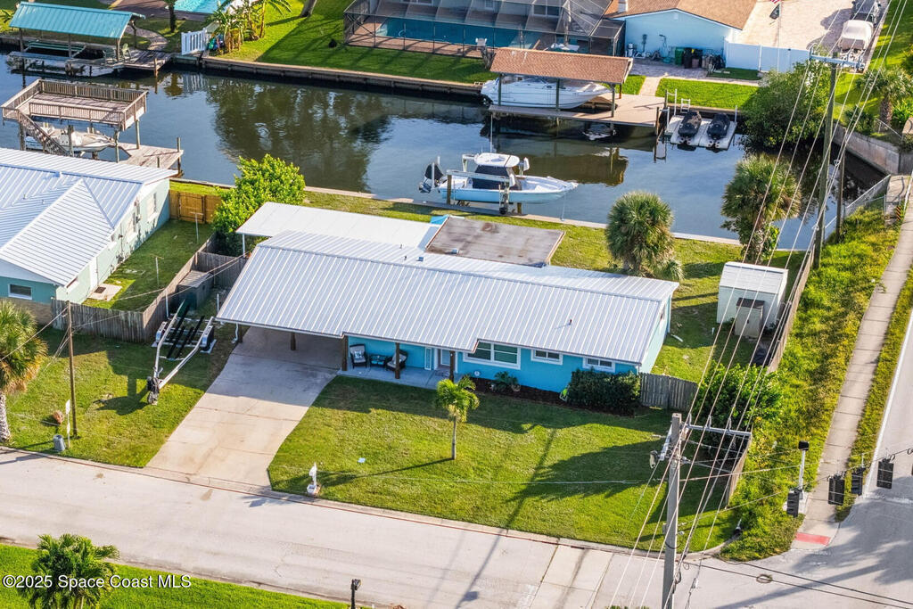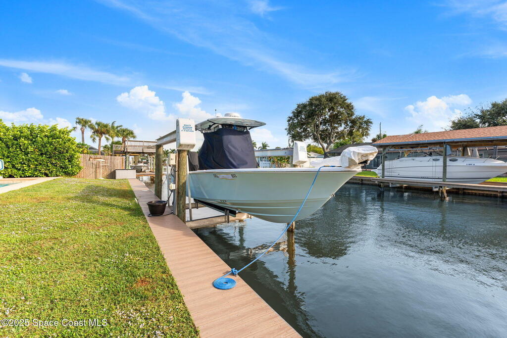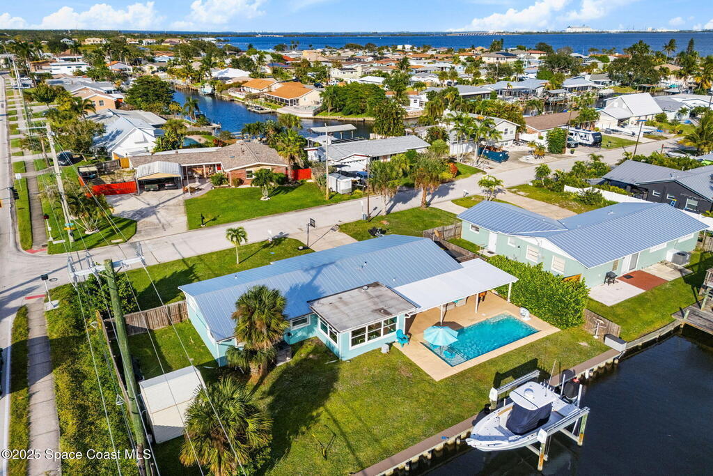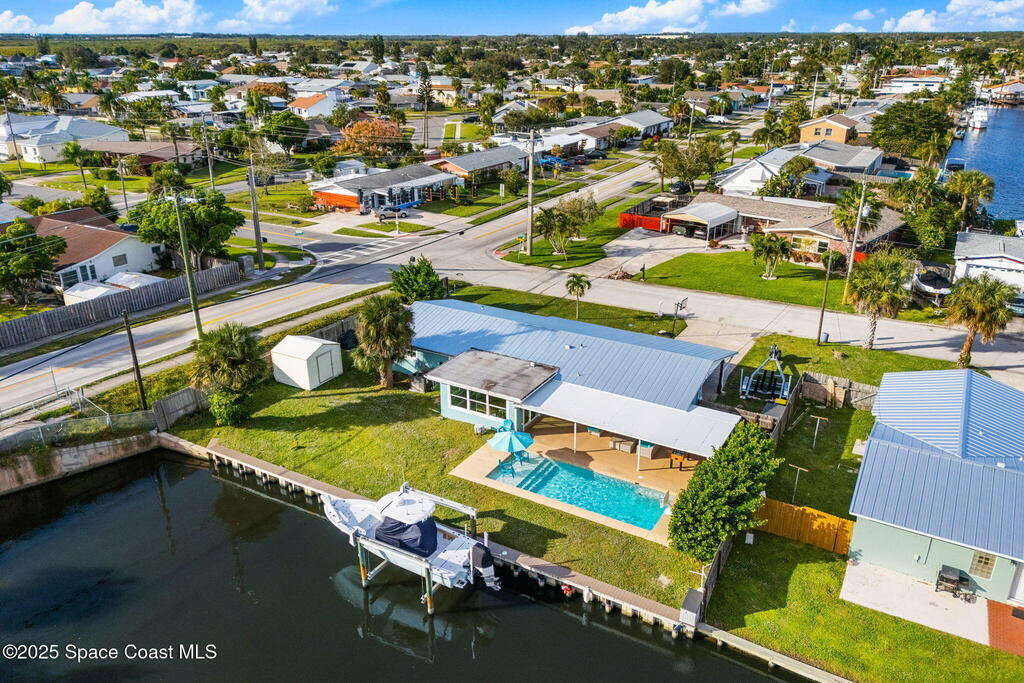 Boater's paradise found on this .24-acre waterfront retreat with direct Banana River access and no bridges to navigate. Positioned on a deep water canal with a 12, 000 lb boatlift and a recent 113' vinyl seawall, this home is built for the coastal lifestyle. Inside, enjoy a thoughtfully updated kitchen, bathrooms, and living areas with bright, open spaces including an enclosed dining room with impact-rated windows and slider. Step outside to the newer saltwater pool, perfect for floating, fun, or post-boat relaxation, and entertain with ease on the expanded patio. The fenced backyard includes a shed, landscaping, and space for pets or outdoor games. Key upgrades include a 2023 metal roof, newer A/C, city sewer (no septic), and no HOA. With 4 bedrooms, 2 bathrooms, and seamless indoor-outdoor flow, this home offers effortless waterway living just a short 10-minute boat ride to the Canaveral Locks. A rare gem for boating, fishing, entertaining, and Florida sun lovers. See it today!