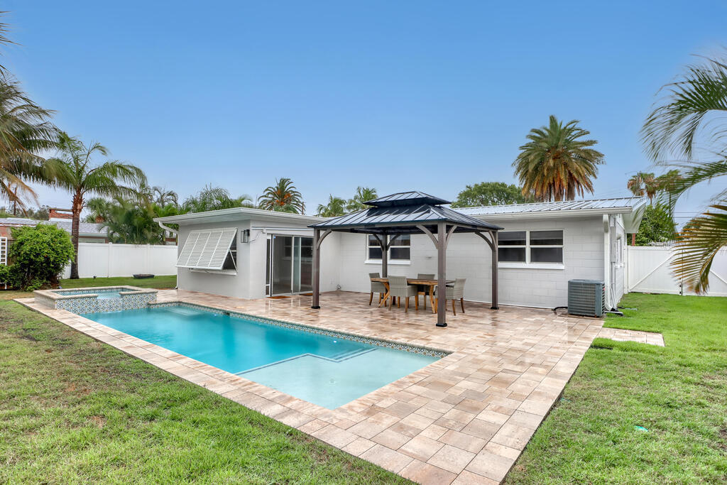 Nestled in Cocoa Isles, this freshly painted unfurnished three-bedroom, two-bathroom home exudes coastal charm. Its exterior boasts an art deco paint job, hinting at the care lavished upon every detail. Inside, new updates adorn the bathrooms, tile and terrazzo floors throughout. The spacious living area flows seamlessly to a modern kitchen, while sliding glass doors lead to the outdoor oasis featuring a salt water pool and hot tub. Pool can be heated or cooled. With a one-car garage that has been converted to additional climate controlled living space for convenience, this home is the epitome of Florida living. Plus, it's just a stroll away from the beaches and downtown Cocoa Beach, offering the perfect blend of relaxation and entertainment. Welcome to your coastal retreat. Easy access to A1A and 528. Walking distance to shops, bars and restaurants. POOL and LAWN CARE included. Owner will consider pets.