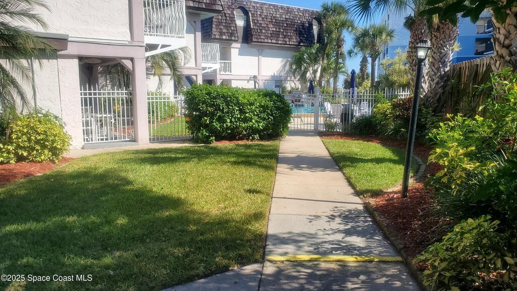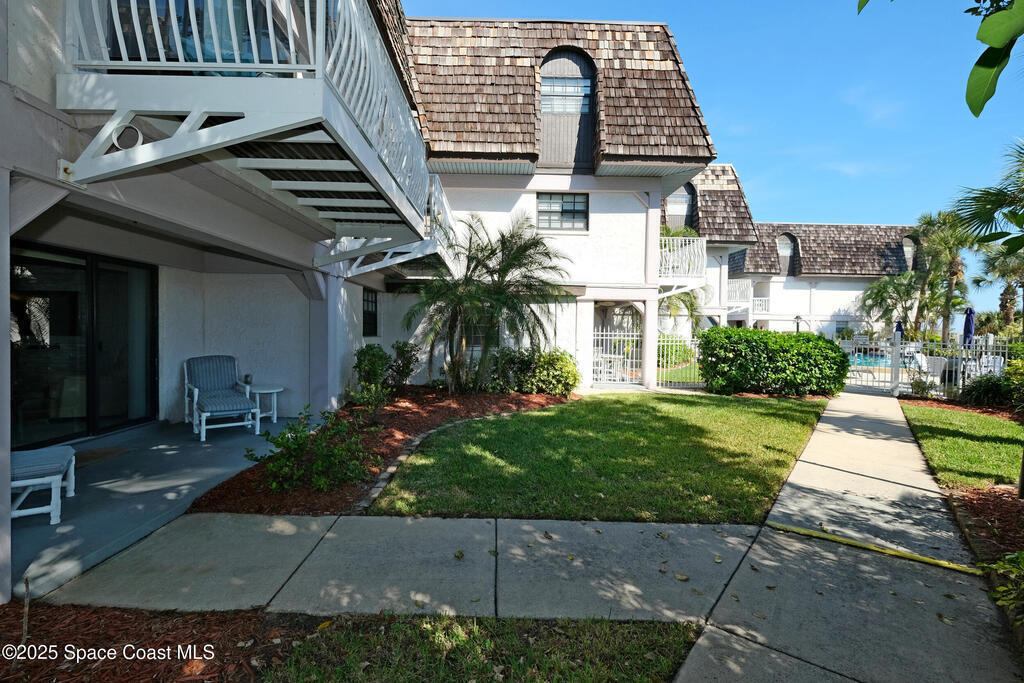 Priced below market and great rental ability. This stunning lower-level condo offers true coastal comfort with no stairs, an inviting open floor plan, & beautiful views of the lush green courtyard & private patio. Just steps from the heated pool, it's the perfect place to relax and enjoy beachside living.Inside, you'll love the spaciousness. Both bedrooms are impressively large, and the entire home is filled with warm natural light. The condo comes fully furnished, making it truly turn-key and ready for immediate enjoyment.The kitchen is beautifully designed with a large center island that opens to the dining and living areas, creating the ideal layout for entertaining guests or spending time with family.All of this, at a price that will surprise you, such an exceptional value for a beachside home. A quick easy walk to the Cocoa Beach Pier and all the shops, dining, & amenities you could want all around youThe moment you step inside, you'll know you've found something special