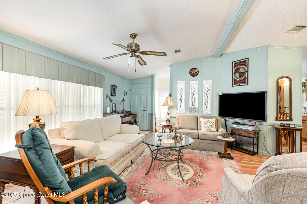 Check out this lovely property offering 2 bedrooms, 2 bathrooms, car port, an indoor laundry room (washer and dryer included), and a screened back porch that includes a convenient storage room. Home also features a 2020 roof and a replaced electric service pedestal (2025). The porch was enclosed. You'll also love the spacious master bedroom, which features a vaulted ceiling, a walk-in closet, and a walk-in shower. The living room also has a vaulted ceiling giving the home an open and airy feel. The kitchen is beautifully appointed with ample cabinets and counter space, plus an over-the-range microwave for added convenience. The home is equipped with ceiling fans throughout, skylights for natural light as well as metal awnings over select windows. Property survey on file. Schedule your viewing!