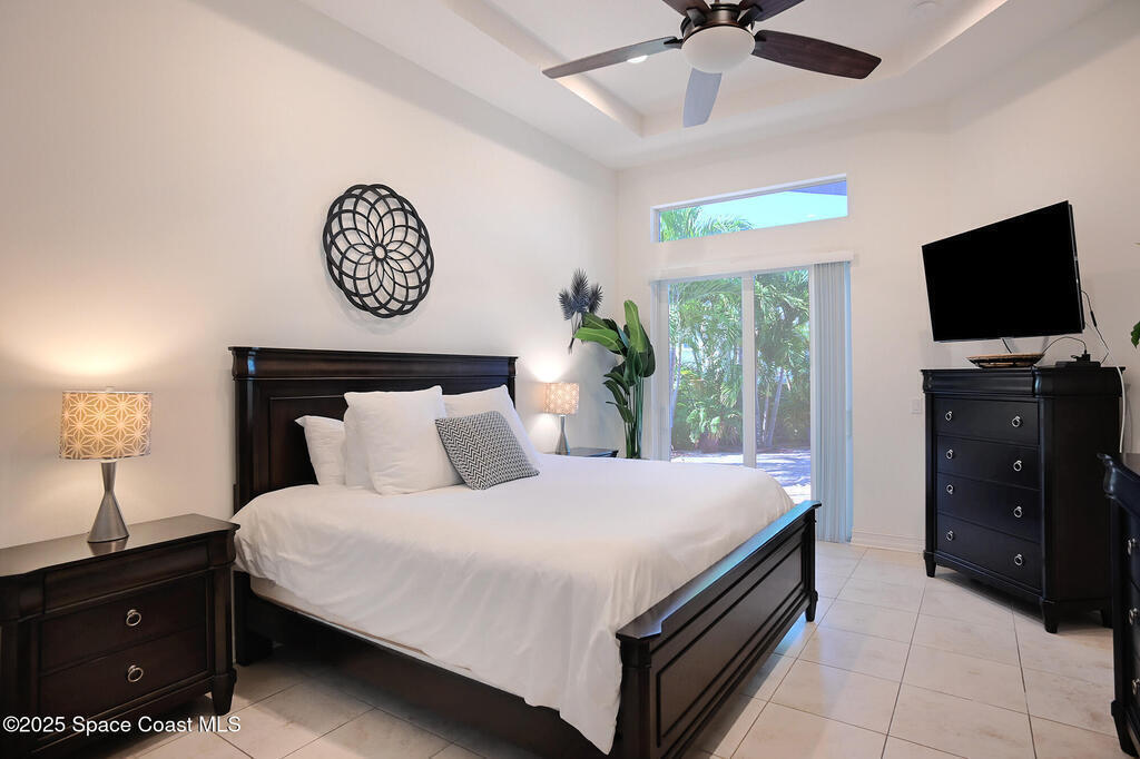 INVESTOR ALERT! AIR B N B this stunning, furnished beachside townhome that stands apart, marrying luxury design with everyday practicality. Highlights include a barrel tile roof, paver driveway, impact-rated windows/sliders. Outdoor entertaining area shines with pergolas, pavers, palm landscaping, and tasteful lighting and large pavered patio. Inside, the space exudes an interior designer's touch w/ lofty 12-foot ceilings, 8-foot doors and sliders, and a refined wrought-iron staircase. Transom windows bathe rooms in natural light, underscoring rich wood and tile flooring. A granite wet bar pairs with a chef's kitchen featuring soft-close cabinetry, granite counters, and S/S appliances, a breakfast bar adds casual seating. First floor owner's retreat opens to pergola patio and features a tray ceiling, plus a primary, spa like bath w/garden tub & separate shower. HOA covers roof replacement + exterior building maintenance, lawn and pool care. Beach access just a short drive away.