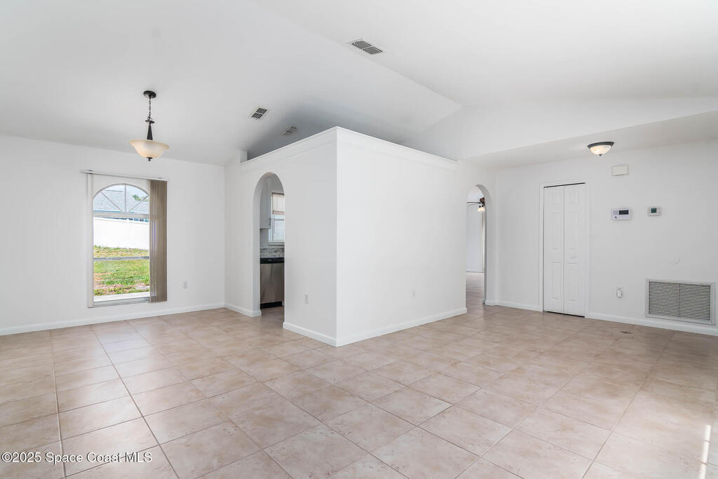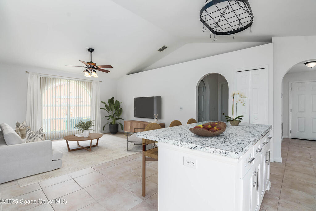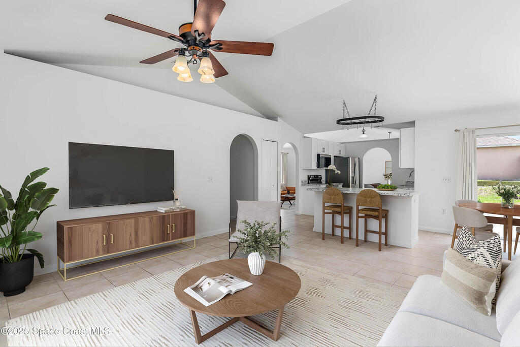 A new roof will be installed prior to closing. No HOA! Discover your own private retreat in this updated 4-bed, 2-bath home offering comfort, flexibility, and freedom. Set in a tree-lined neighborhood, this move-in-ready residence feels welcoming from the moment you enter. The open living area is filled with natural light and features vaulted ceilings and tile flooring. The refreshed kitchen includes white cabinets, a center island, and a breakfast nook with sliding glass doors to the backyard. The primary suite is a relaxing escape with an updated en-suite bath and a walk-in closet. Fresh interior and exterior paint enhance the clean, modern feel. Major upgrades include a brand-new whole-house plumbing system and a newly installed septic system for peace of mind. The spacious backyard provides privacy and room to relax or entertain. Conveniently located near shopping, dining, and parks, with easy access to Orlando, the beaches, and Kennedy Space Center, making daily living simple.