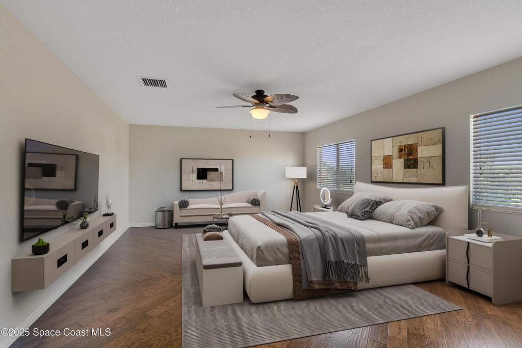 Welcome to Verolago in North Vero Beach. This two-story, move-in-ready home sits on the largest lot in the community, with an extended covered lanai that backs to open green space--perfect for running, playing, and sunset views. The interior includes a grand kitchen, two living spaces, and a versatile loft suitable for an office or retreat. Upstairs, the oversized Master Suite features two walk-in closets, complemented by three additional bedrooms. The community boasts a expansive clubhouse, large pool, and fitness center for residents.