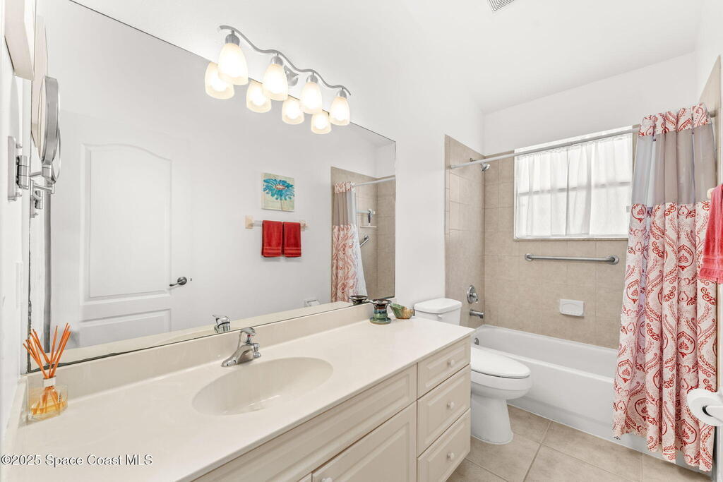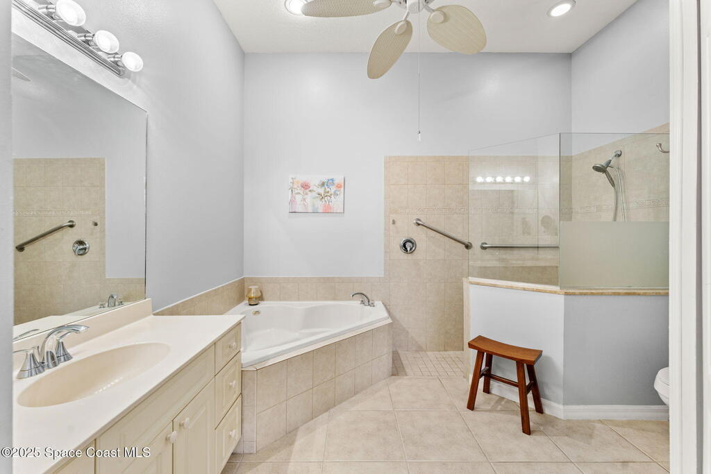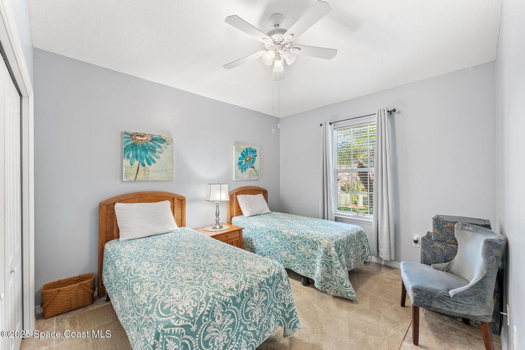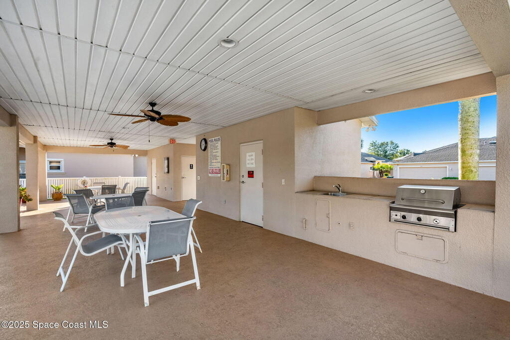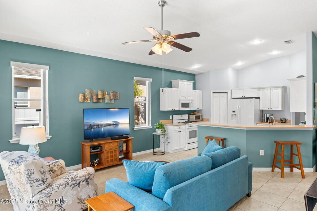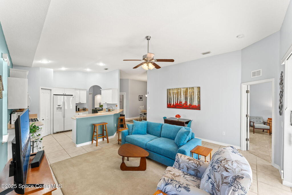 Experience effortless comfort and convenience in this 3BD/2BA half-duplex located in the gated Players Club at Bayside Lakes. Enjoy tile flooring throughout, vaulted ceilings, and a bright, open layout. The kitchen features white cabinetry, Corian countertops, a gas stove, and a walk-in pantry. Relax on the screened porch with pull-down shades, accessible from both the living room and the owner's suite. The primary bedroom includes a walk-in closet and an ensuite with a soaking tub and walk-in shower. Updates include a newer roof (2018), HVAC (2021), and water heater (2022). The HOA covers roof replacement, exterior maintenance, and lawn care for just $350/month, plus a community pool. You'll also enjoy access to Bayside Lakes amenities, including RV parking, and be minutes from shopping and dining. Perfect for downsizing or a seasonal retreat, this home offers easy Florida living.