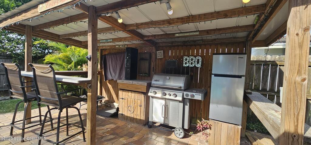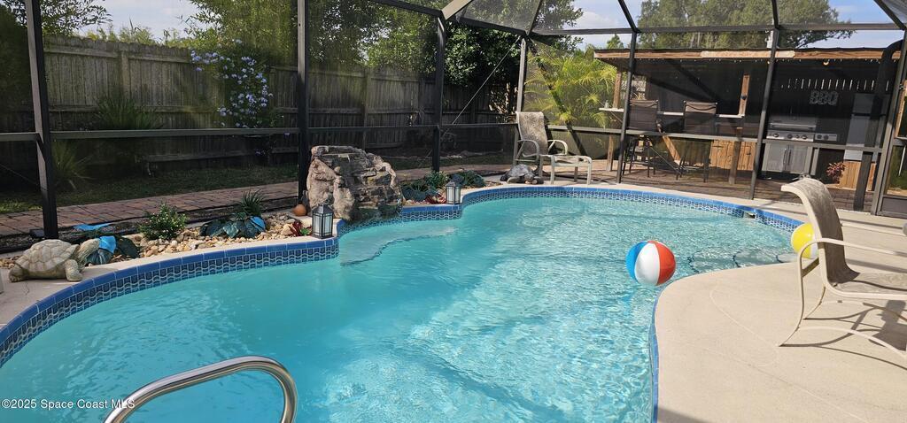 Lovely and well maintained 3 bedroom, 2 bath heated pool home in desirable Lantern Park. Situated on a spacious corner lot, this property backs up to a conservation area with walking trails and bird sanctuary, offering exceptional privacy and natural views.Recent updates include a modern kitchen with quartz countertops, new refrigerator, plus beautiful wood look tile flooring in the main living areas. Both the master and guest baths have been tastefully renovated.Step outside to your fenced backyard oasis featuring a summer kitchen with refrigerator, piped in propane gas for the grill, and a Blackstone griddle, all under a custom wood covering. The screened pool area is perfect for entertaining, and additional paved areas off the driveway provide extra parking.This home blends comfort, upgrades, and outdoor living. This home is truly must see!
